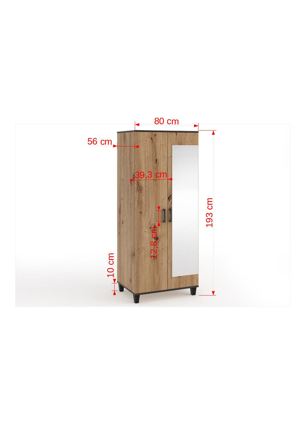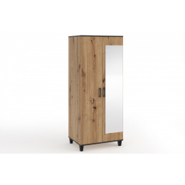 A POLA kollekció kétszárnyú szekrénye nagyszerű választás a nappaliba, hálószobába vagy előszobába. Kényelmes tárolási helyet biztosít. Felszerelt vállfával és tágas polcokkal könnyen rendezetté teszi a szobát. Az elhelyezett tükör az elülső oldalon optikailag megnöveli a helyiséget. A természetes fa hatását a fekete színű kiegészítők és betétek hangsúlyozzák. Modern stílusban karbantartva biztosan felkelti a figyelmet. Egyszerű, ugyanakkor funkcionális. Javasoljuk, hogy ismerkedjen meg a POLA kollekció többi termékével.