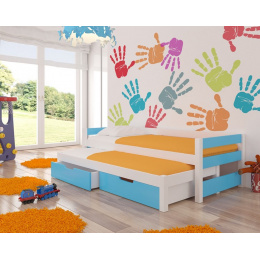 A FRAGA franciaágy ideális megoldás két testvér szobájában. Tökéletesen beválik váratlan vendégek látogatása esetén is. Az ágy két praktikus és funkcionális ágyneműtartó fiókkal, valamint tartós és erős kerettel rendelkezik. Az ággyal együtt kap egy szett habszivacs matracot pamut huzattal, cipzárral.