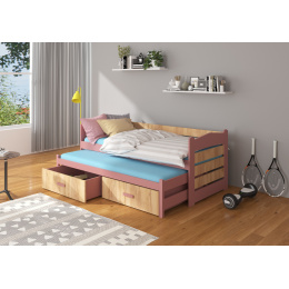 A TIARRO franciaágy ideális megoldás két testvér szobájában. Tökéletesen beválik váratlan vendégek látogatása esetén is. A modell két méretben és sok színben kapható, amelyek minden elrendezéshez illenek. Az ágy két praktikus és funkcionális ágyneműtartó fiókkal rendelkezik, valamint tartós és erős kerettel, amely fenyőfából készült. Az ággyal együtt kapsz egy 8 cm vastag habszivacs matrac készletet.