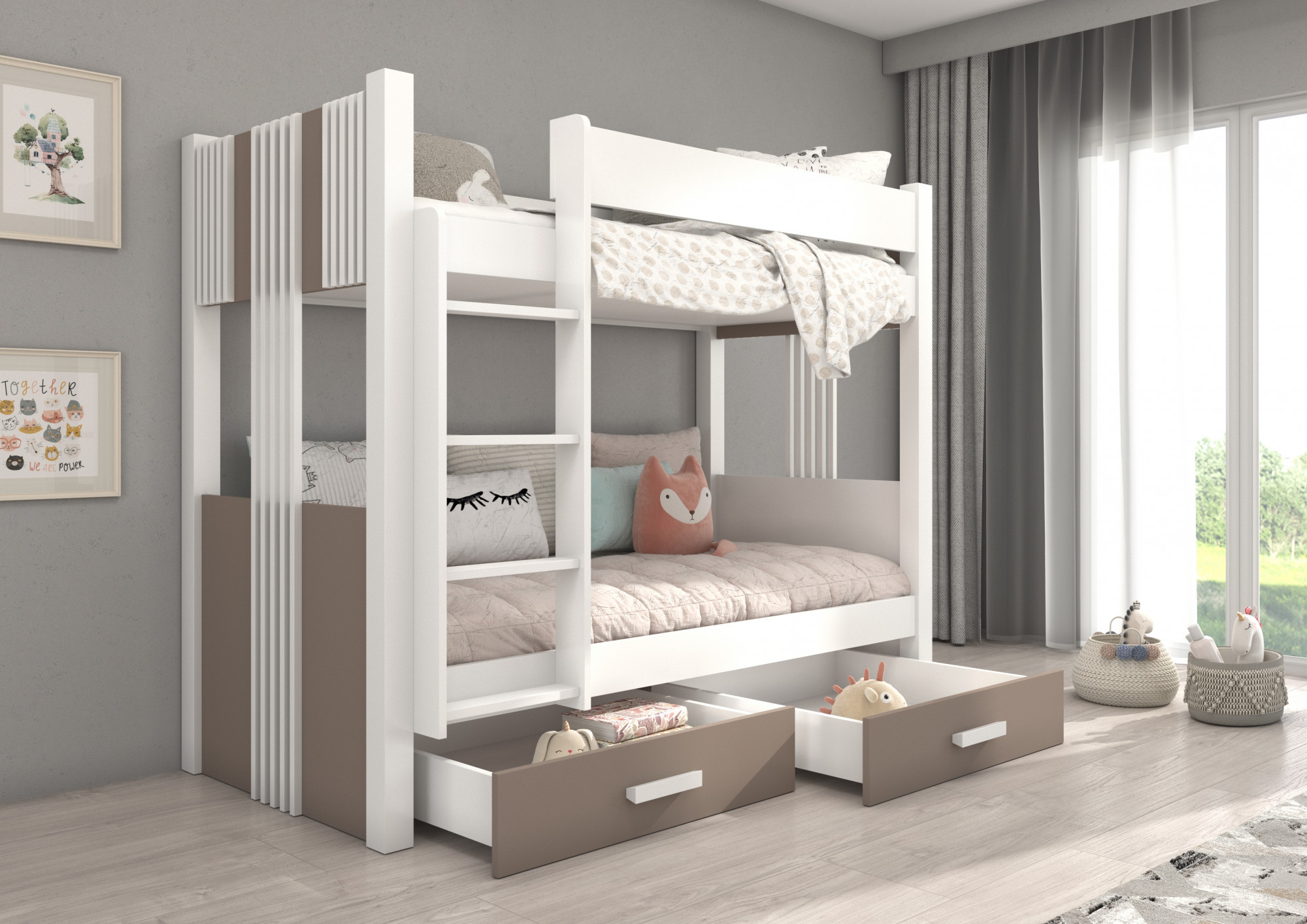 Kétszemélyes emeletes ágy ARTA 200x90 Fehér+Szarvasgomba