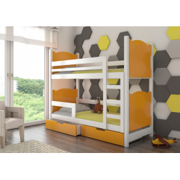 Kétszemélyes emeletes ágy matracokkal MARABA Fehér+Narancssárga