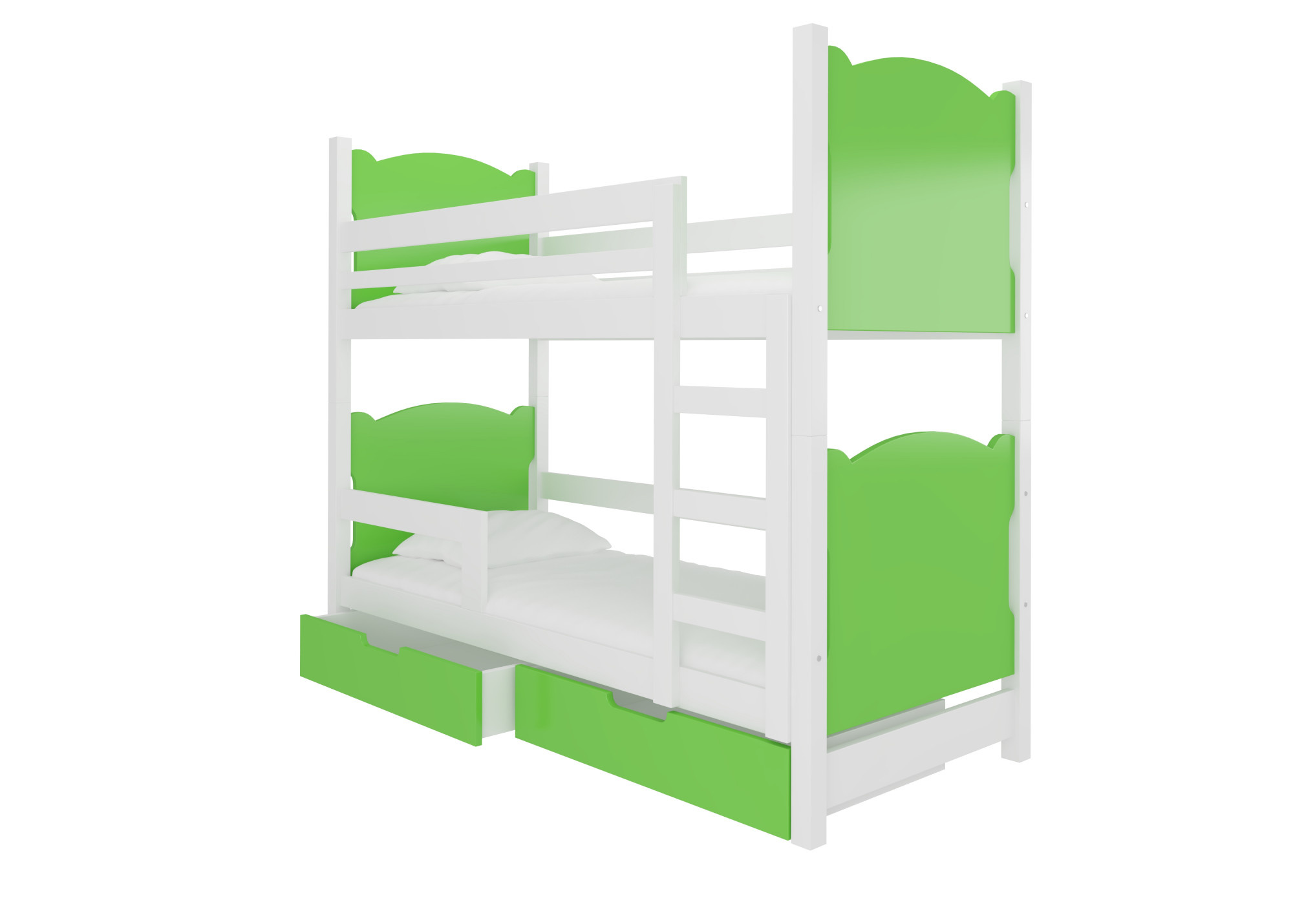 Kétszemélyes emeletes ágy matracokkal MARABA Fehér+Zöld