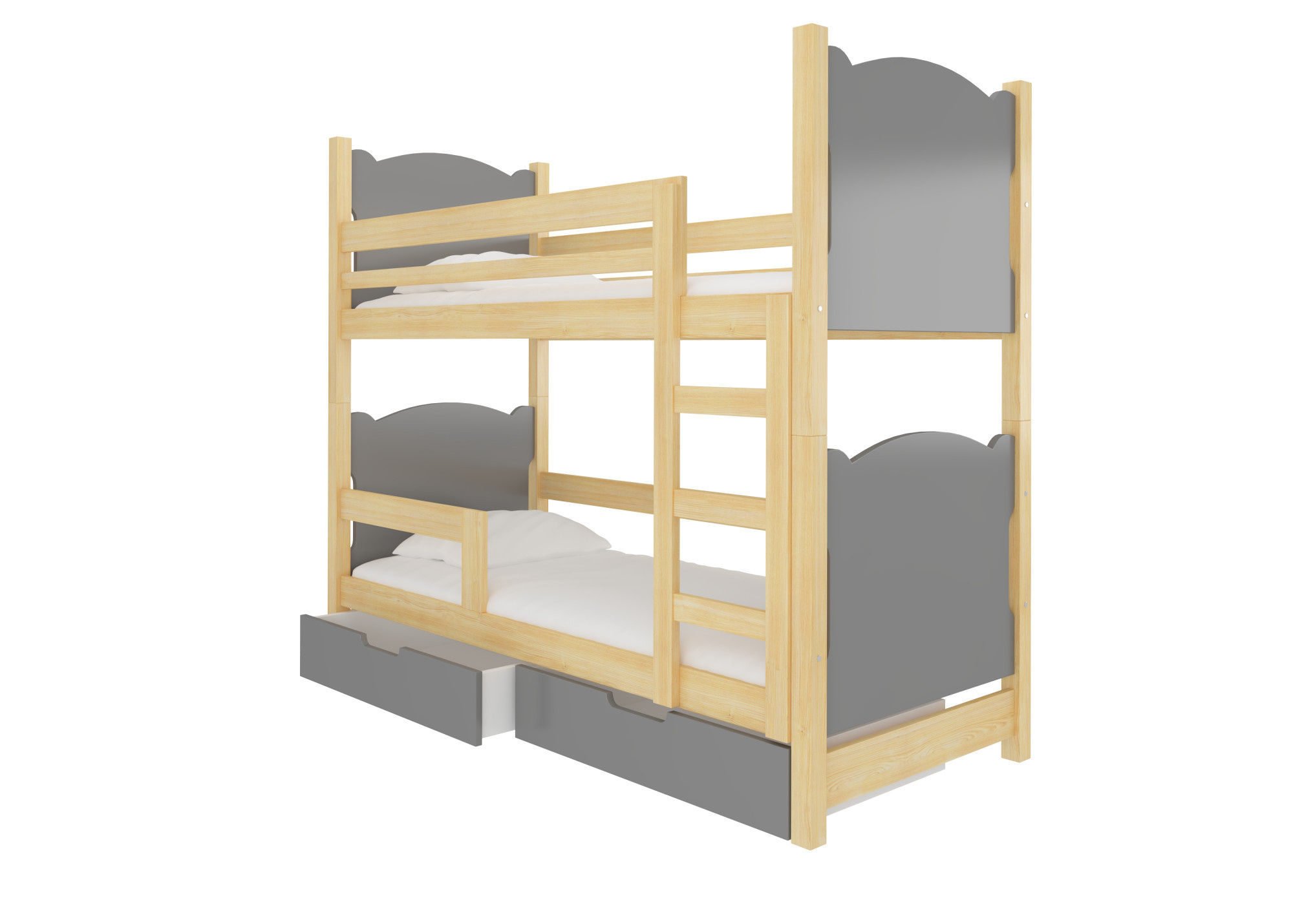 Kétszemélyes emeletes ágy matracokkal MARABA Pine+Gray
