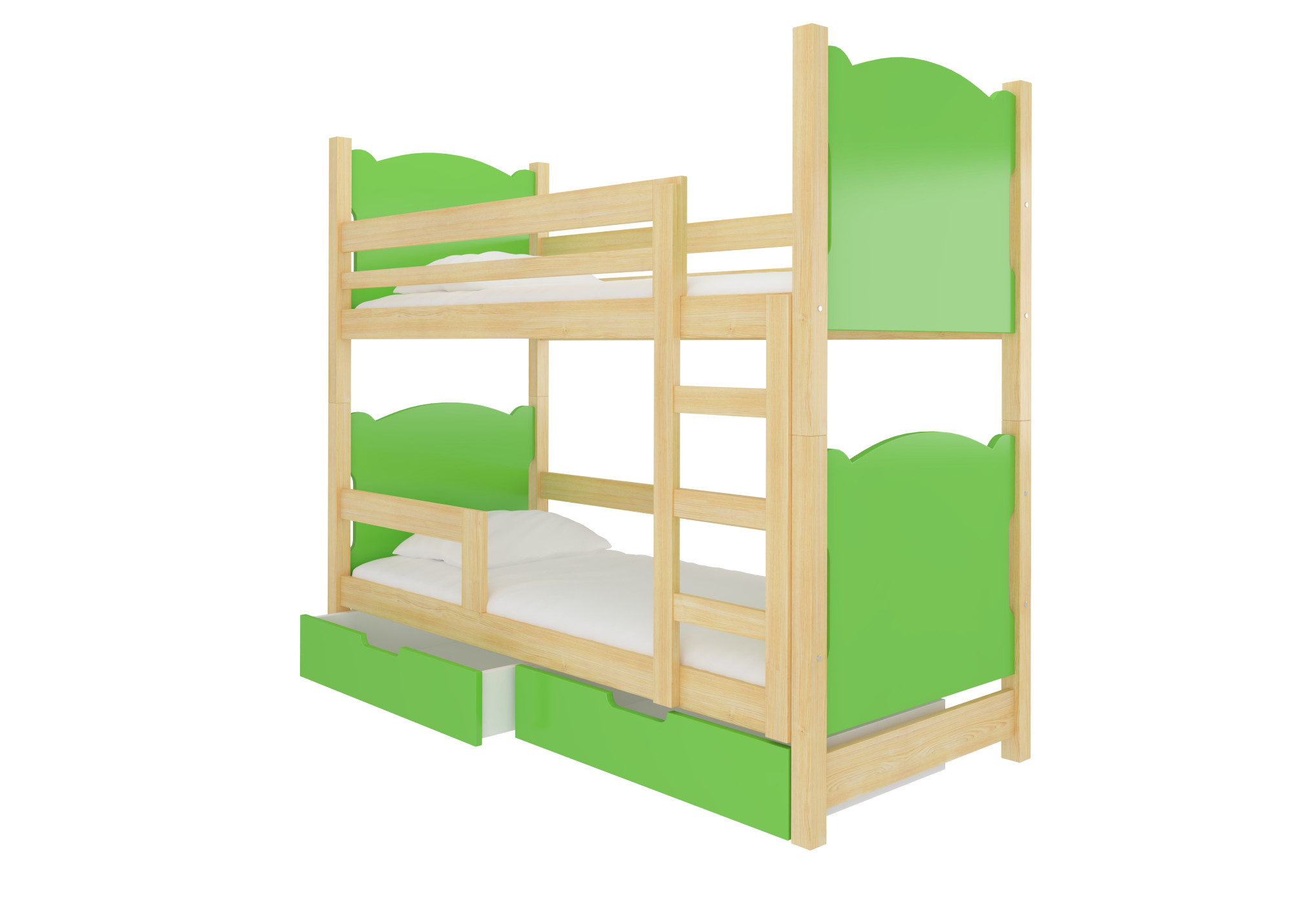Kétszemélyes emeletes ágy matracokkal MARABA Pine+Green
