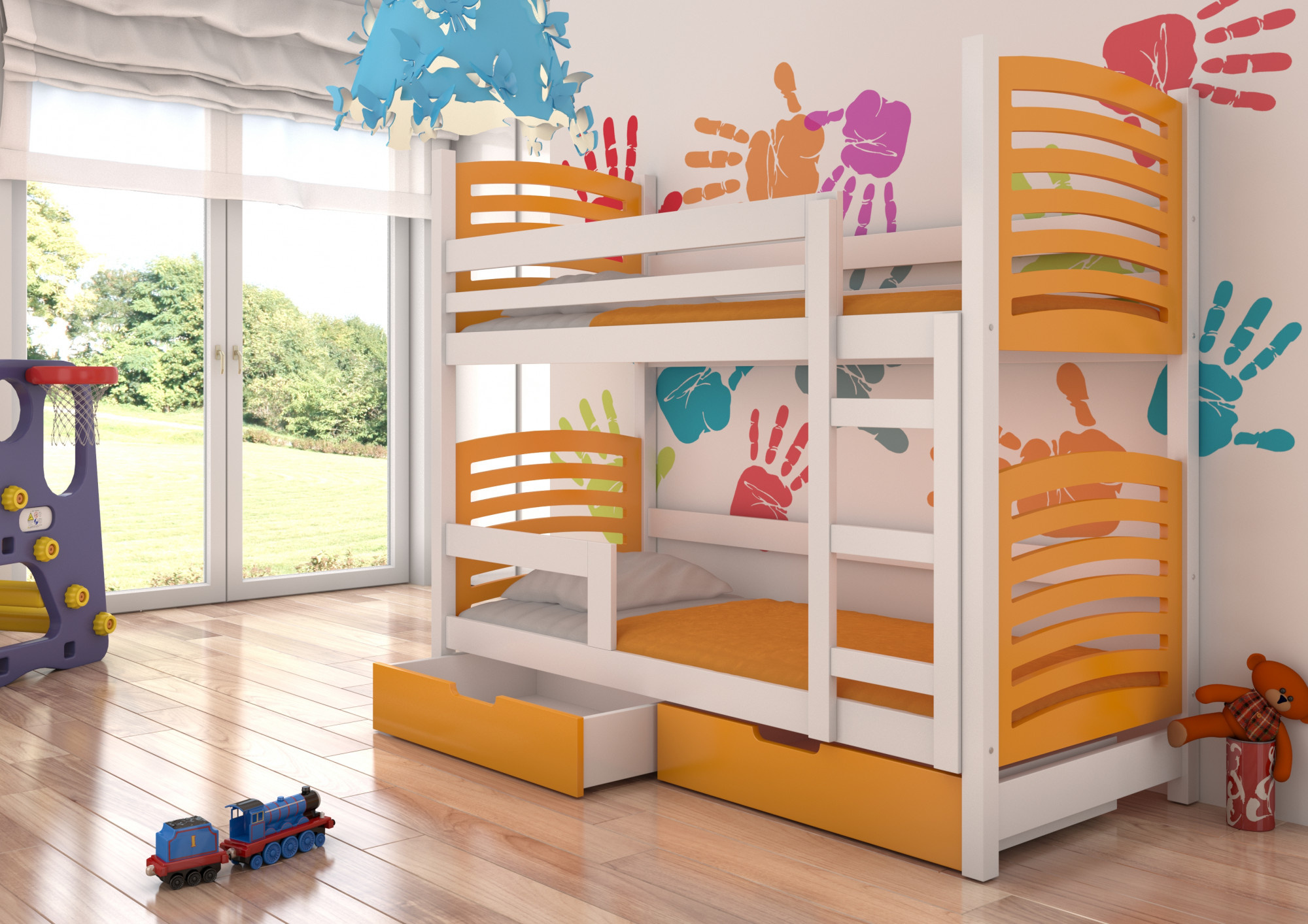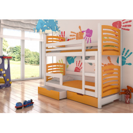 Kétszemélyes emeletes ágy matracokkal OSUNA Fehér+Narancssárga