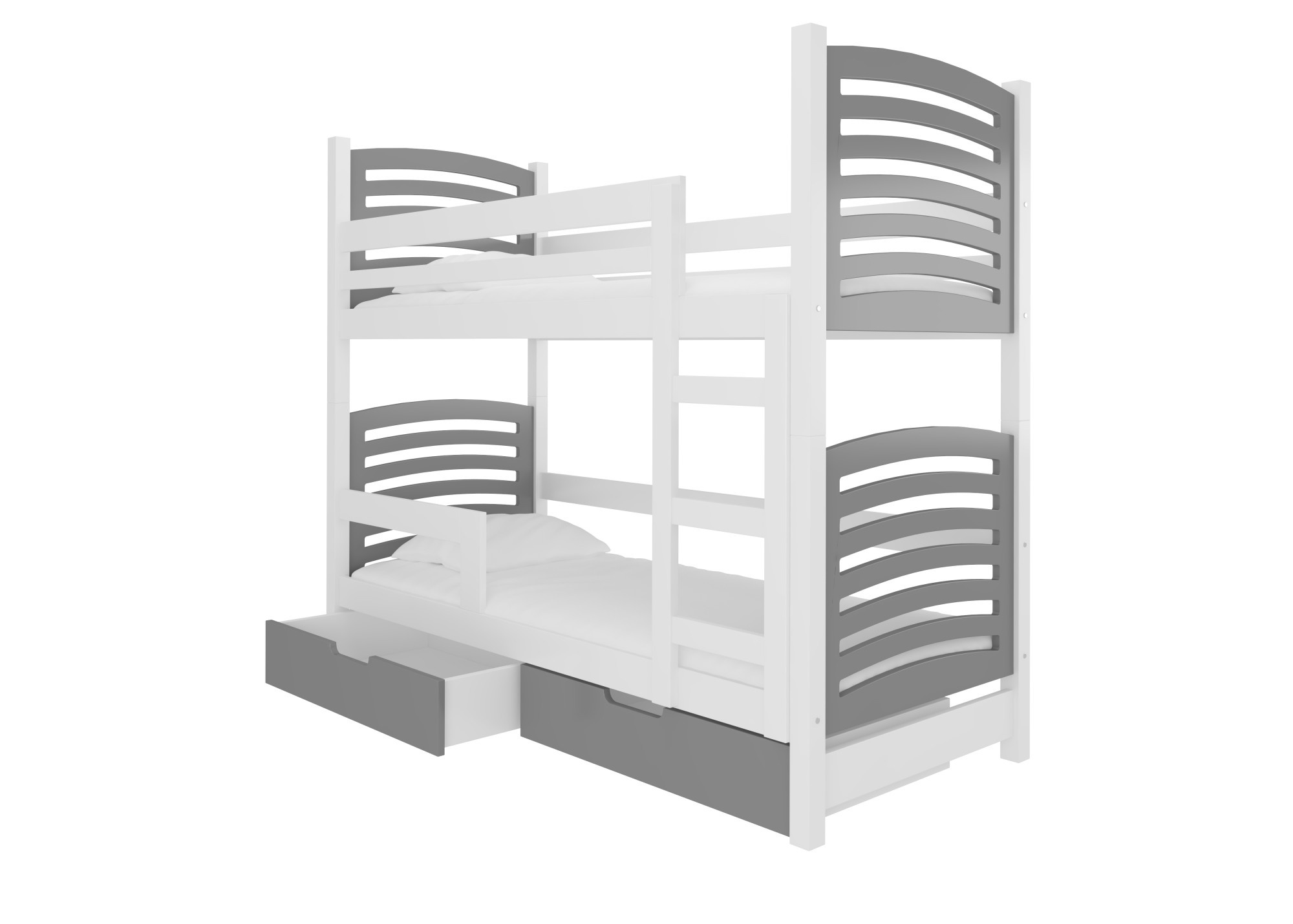 Kétszemélyes emeletes ágy matracokkal OSUNA Fehér+Szürke