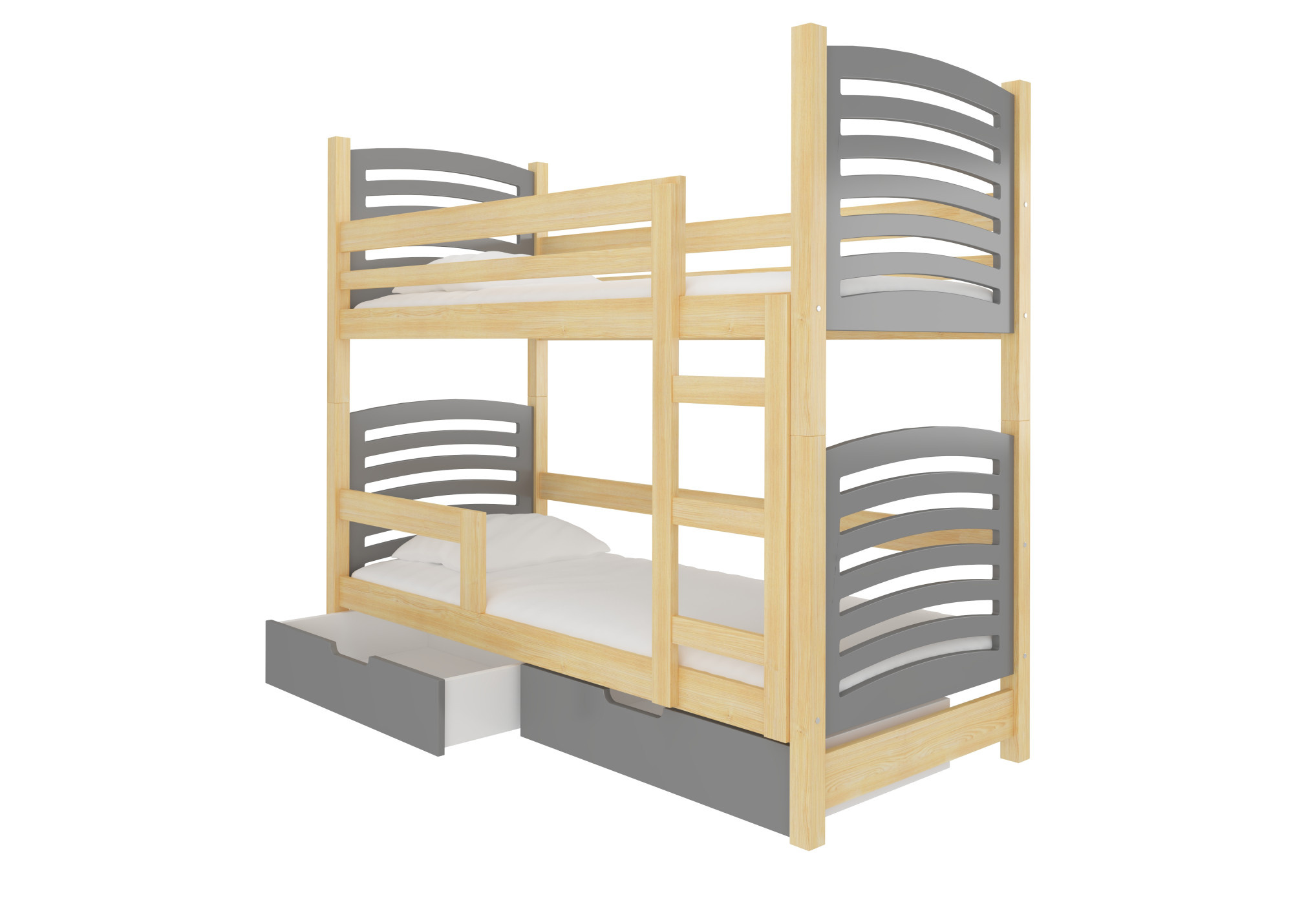 Kétszemélyes emeletes ágy matracokkal OSUNA Pine+Gray