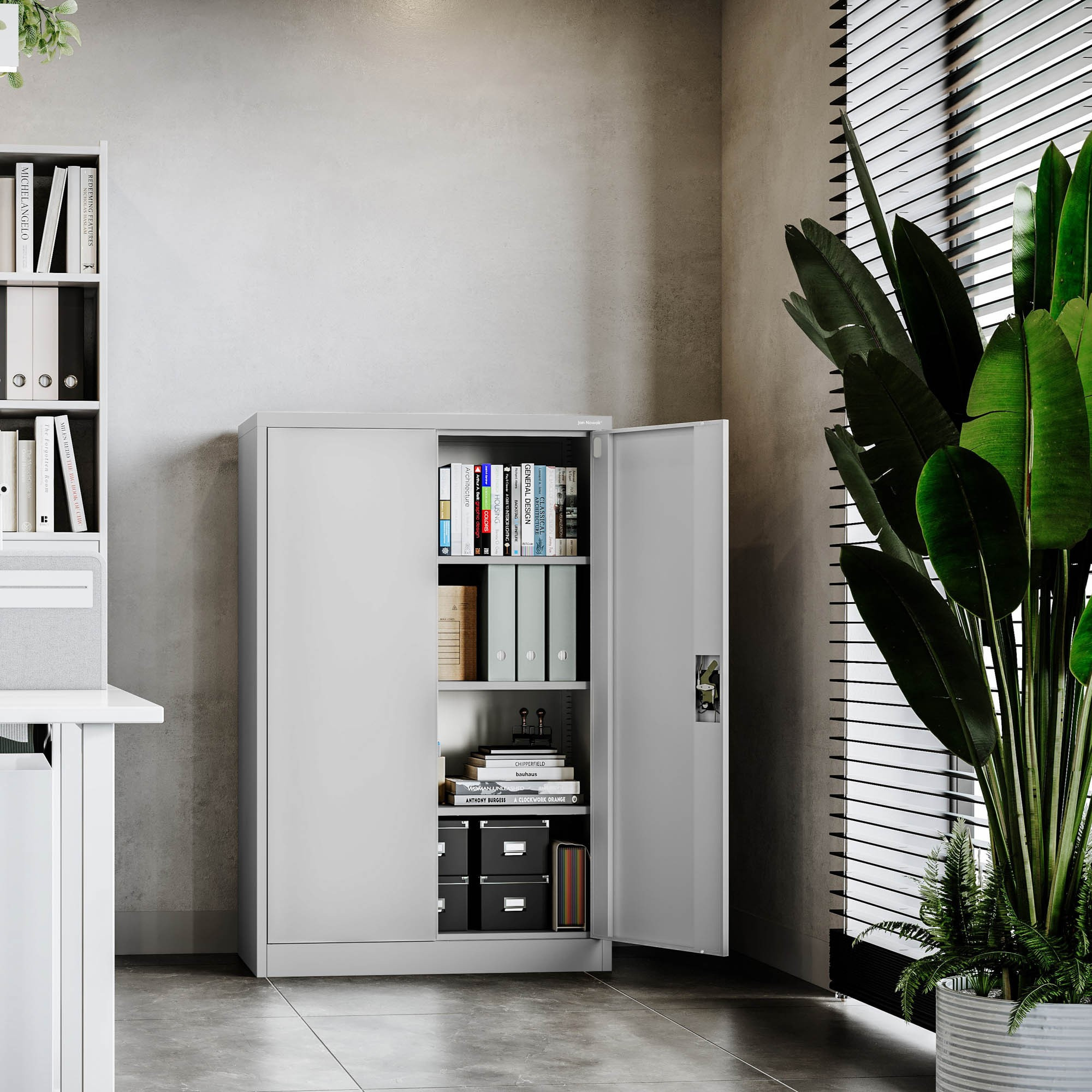 Megbízható és elegáns megoldást keres dokumentumok, szerszámok vagy gyógyszerek tárolására? Bemutatjuk a KEVIN irodai szekrényt modern szürke kivitelben. Ez az acél szekrény úgy van tervezve, hogy megfeleljen a legszigorúbb biztonsági, tartóssági és praktikussági követelményeknek.