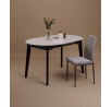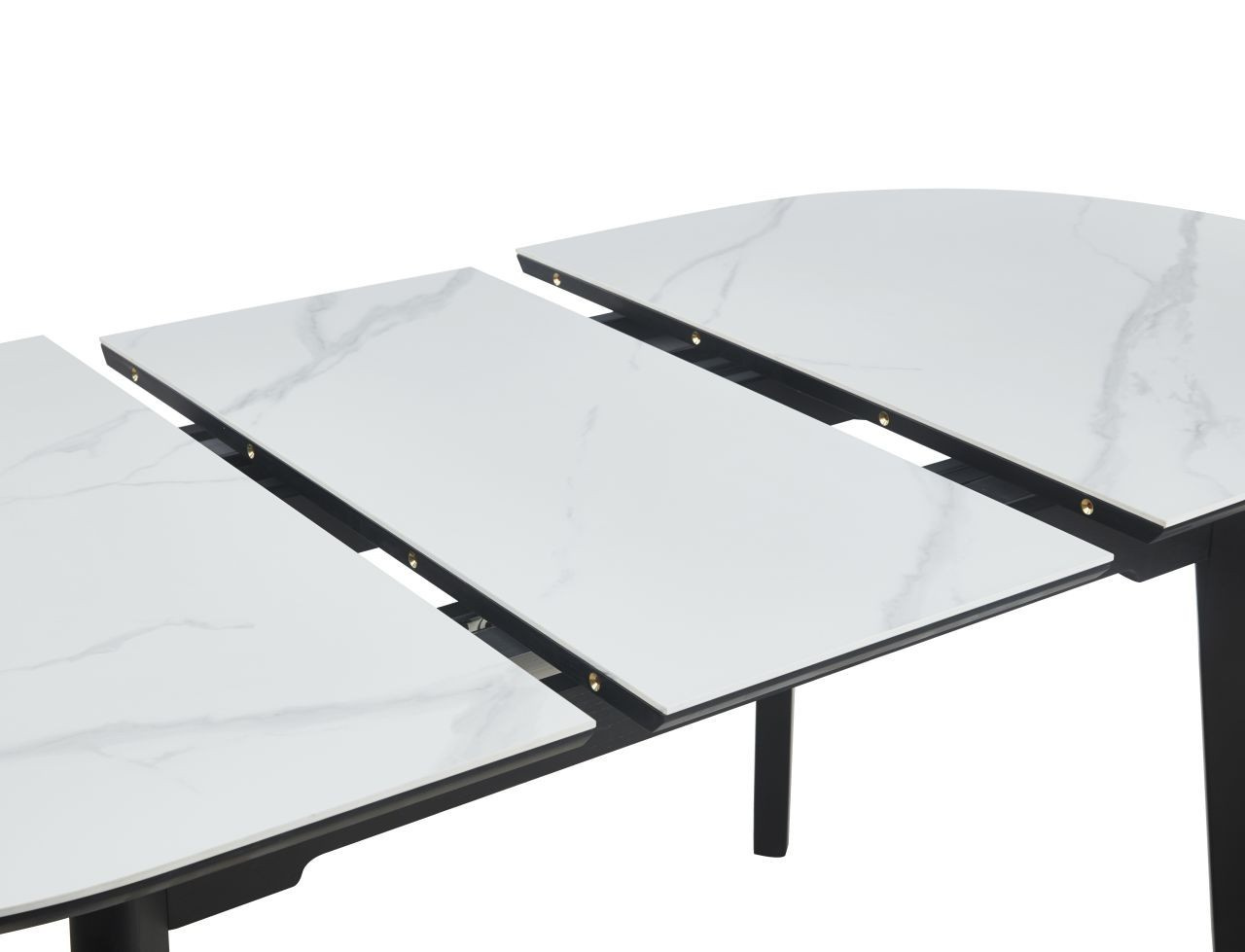 Méretek: - hosszúság: 140 cm (kihúzva 180 cm) - szélesség: 85 cm - magasság: 76 cm Anyag: - lap + betét: kerámia + MDF - lábak + keret: fa Szín: - fehér márvány + fekete Egyéb: - kihúzás: szinkron mechanizmus automatikus betét kihúzással