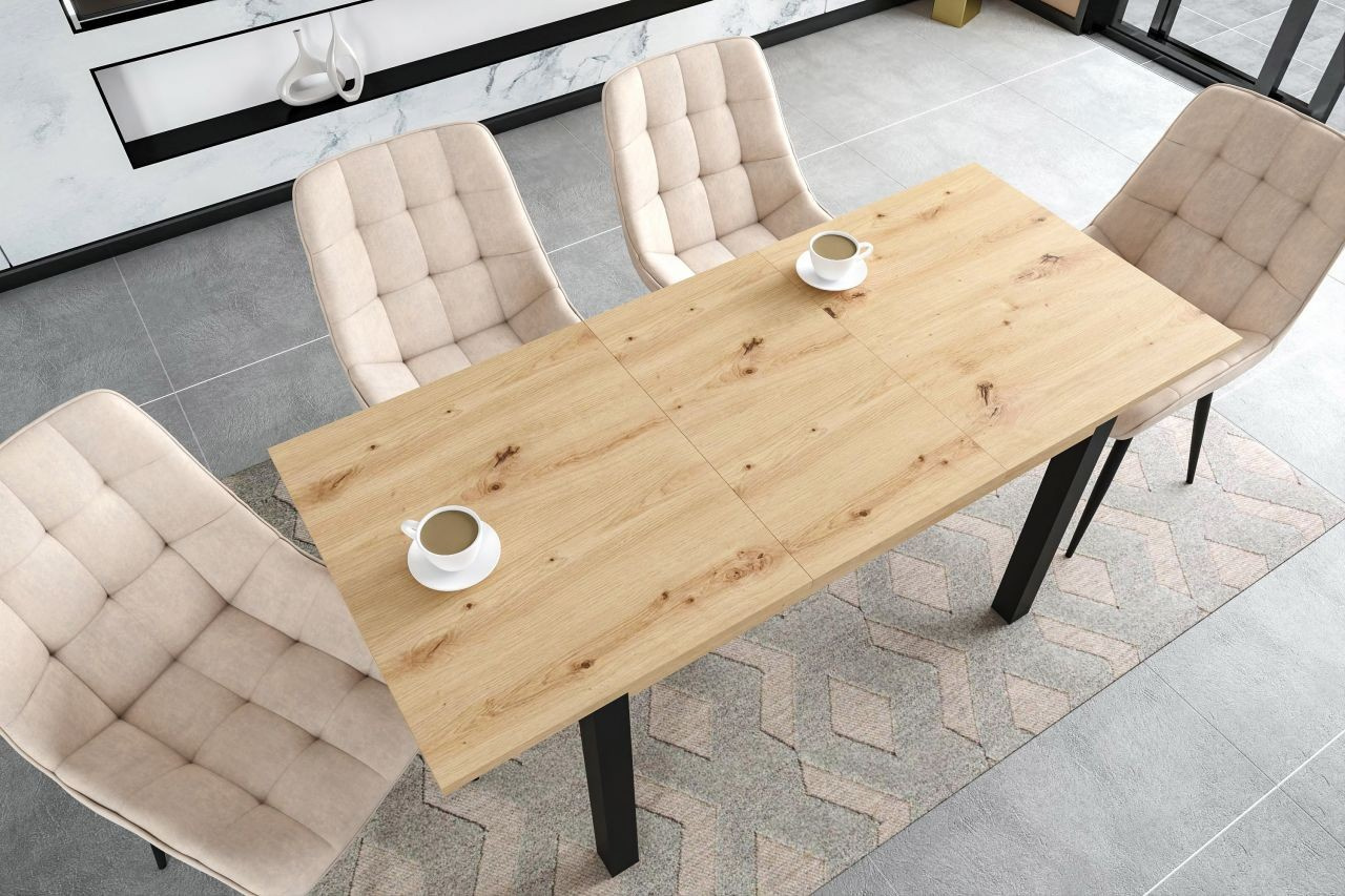 Kihúzható asztal tölgy artisan + fekete 120160x70 ST2-FX