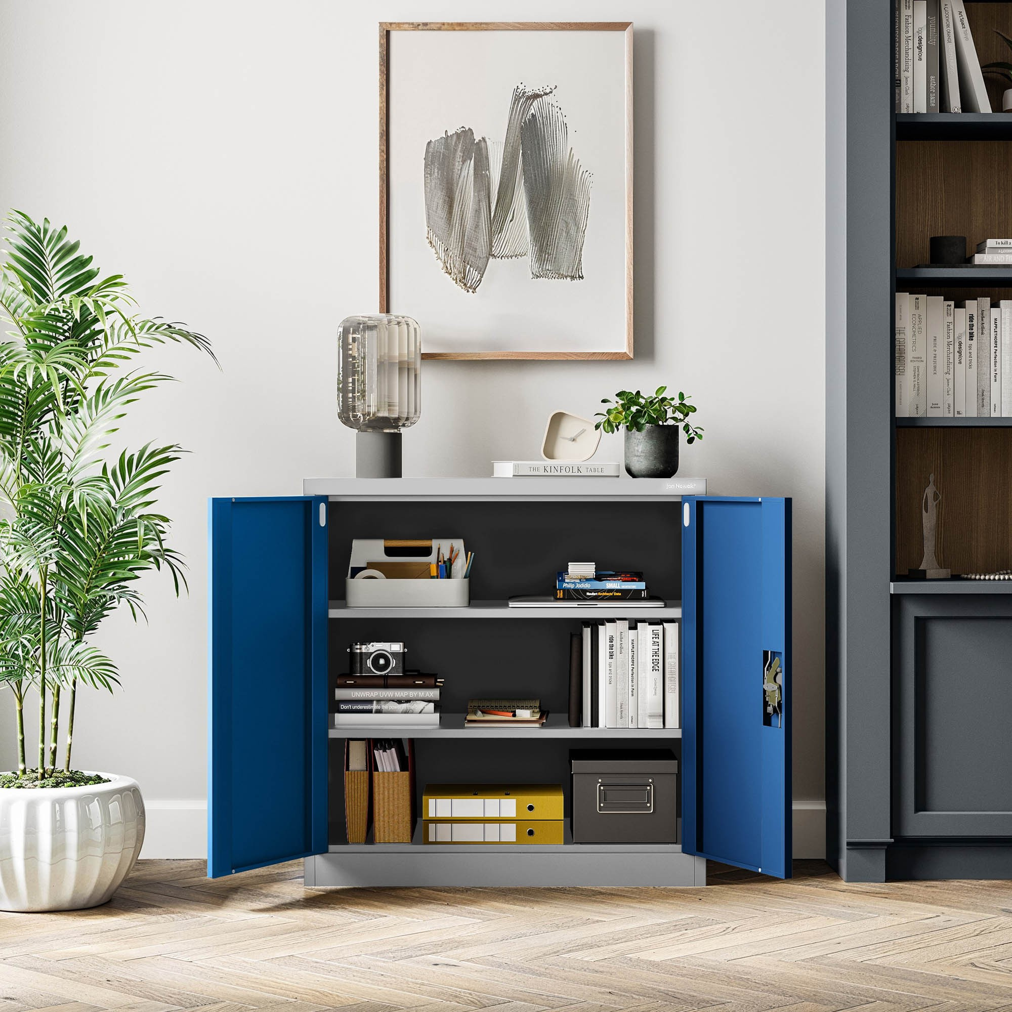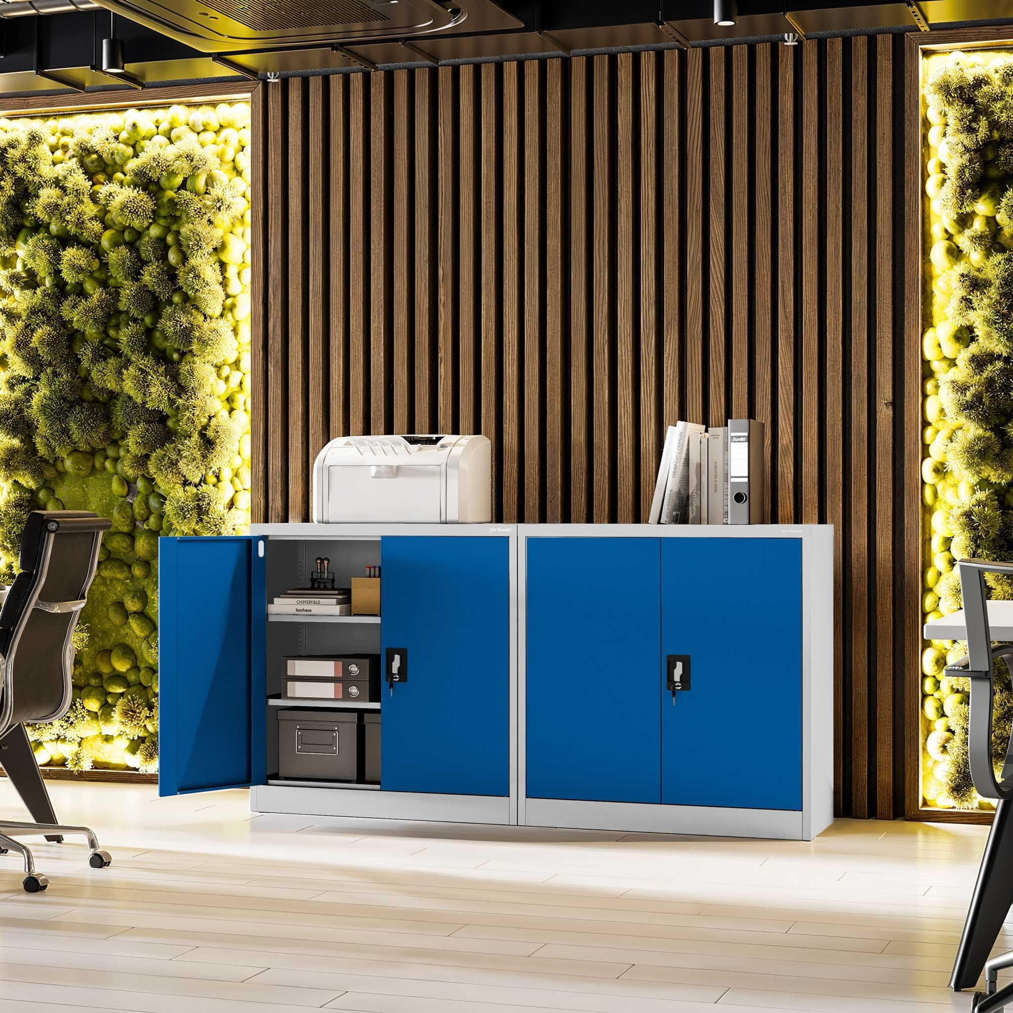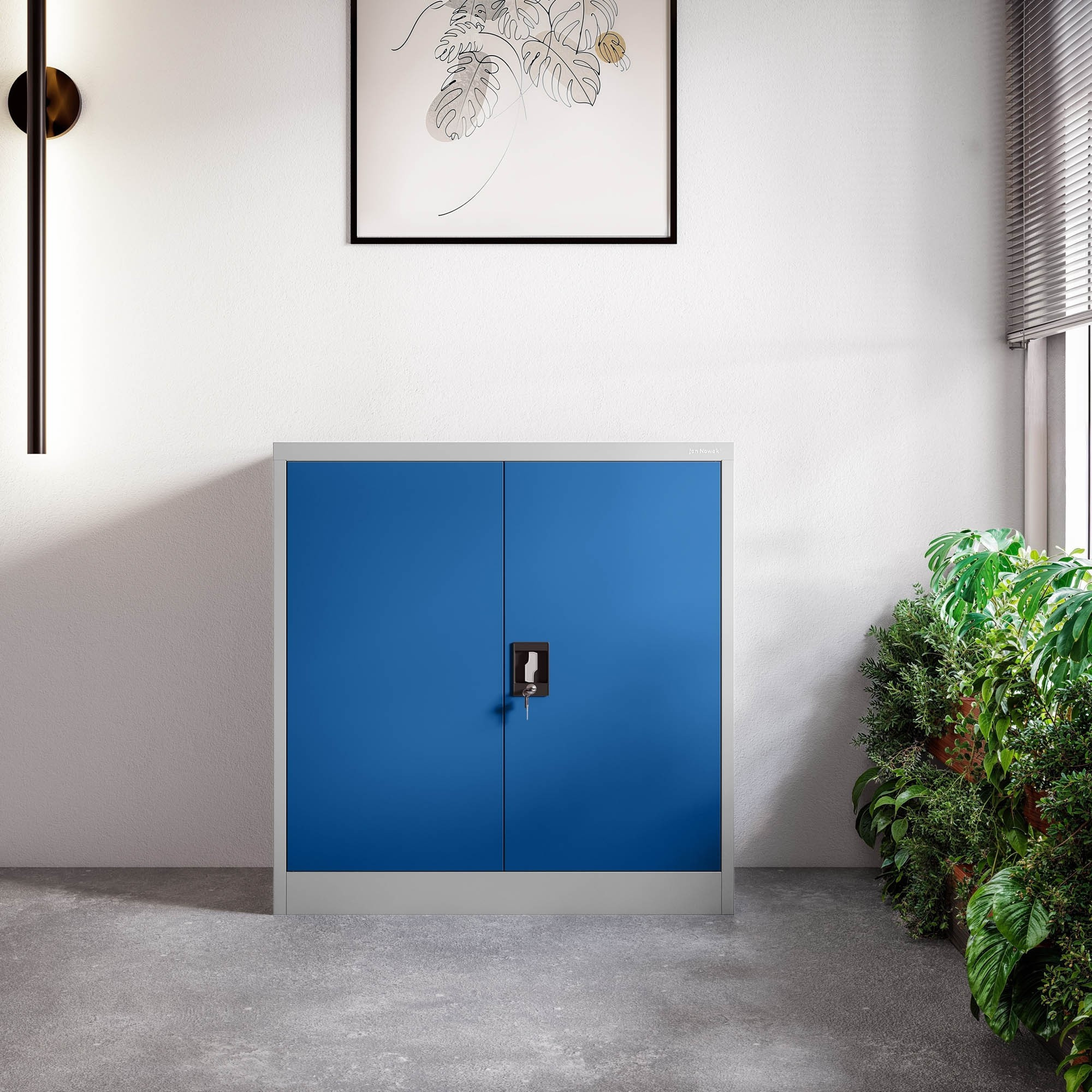 Kis zárható szekrény BEATA, 900 x 930 x 400 mm, szürke-kék