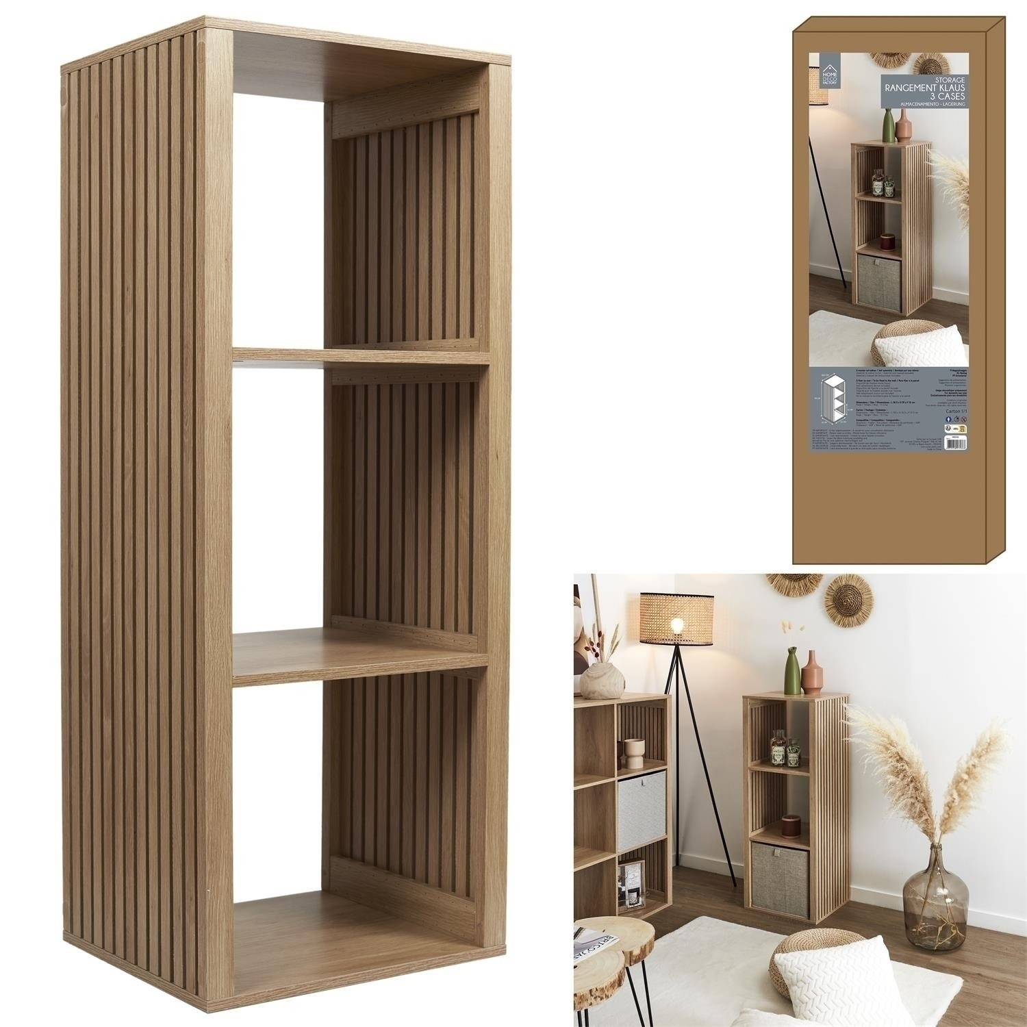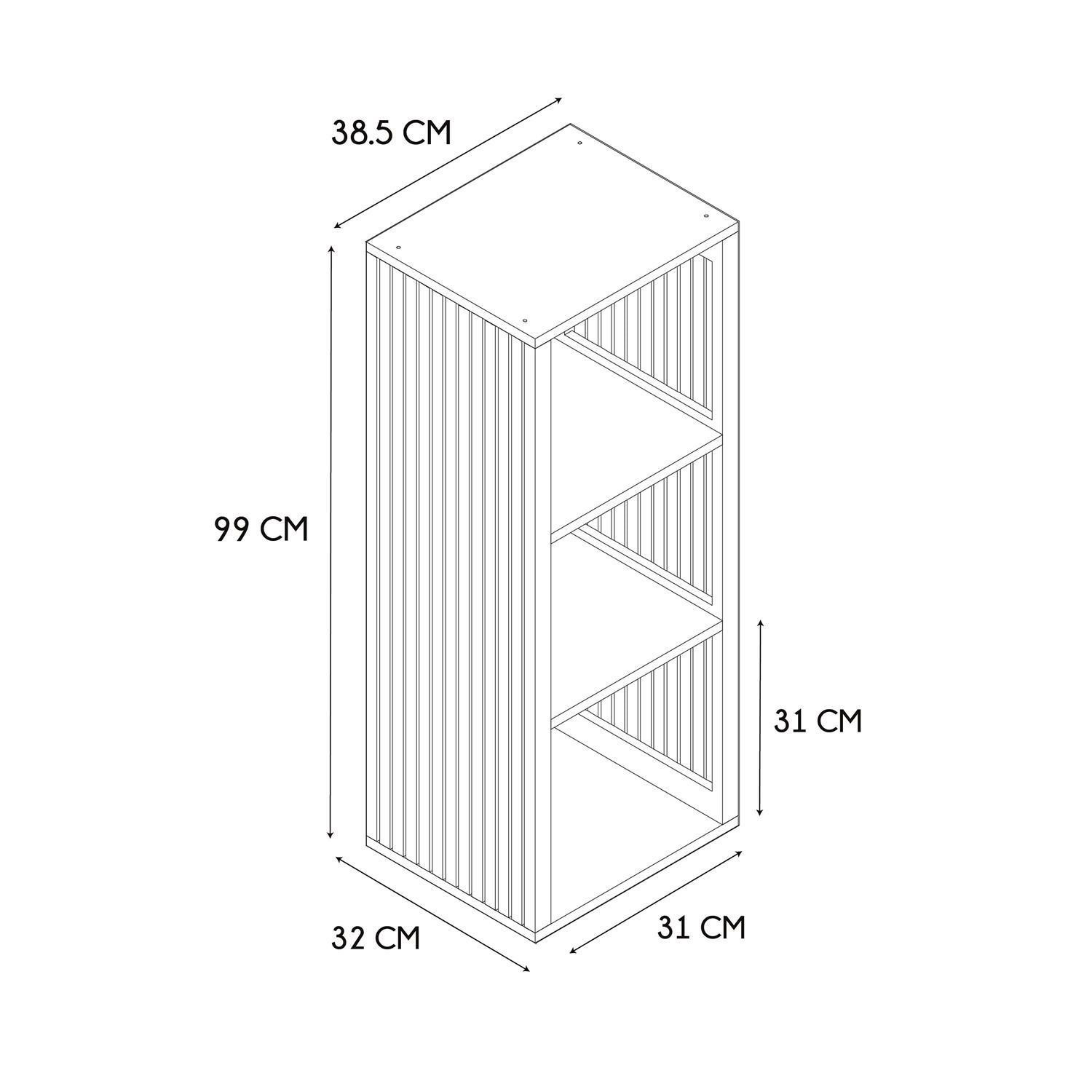 A Klaus széles kollekciójából származó polc elsősorban modern dizájnnal rendelkezik, lamellás befejezéssel. A polc három kubista polcból áll, amelyekre az órák vagy könyvek mellett dobozokat is helyezhetünk. Anyag: Faerezetet utánzó furnérozott MDF lap. Max. terhelés polconként: 6 kg Összeszerelést igényel. Kartondoboz méretei: 38x10,5x104,5cm, Súly 12,7kg