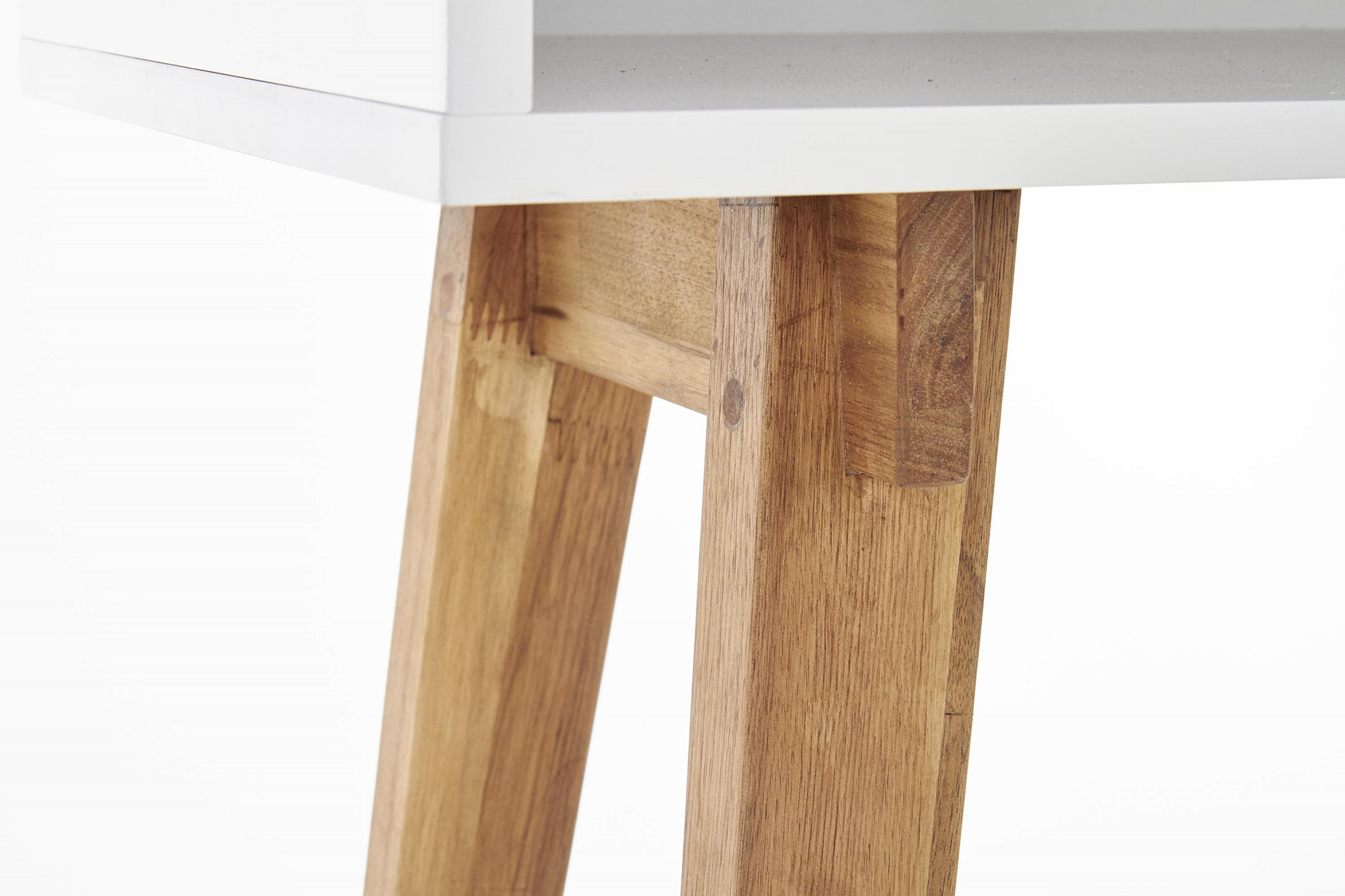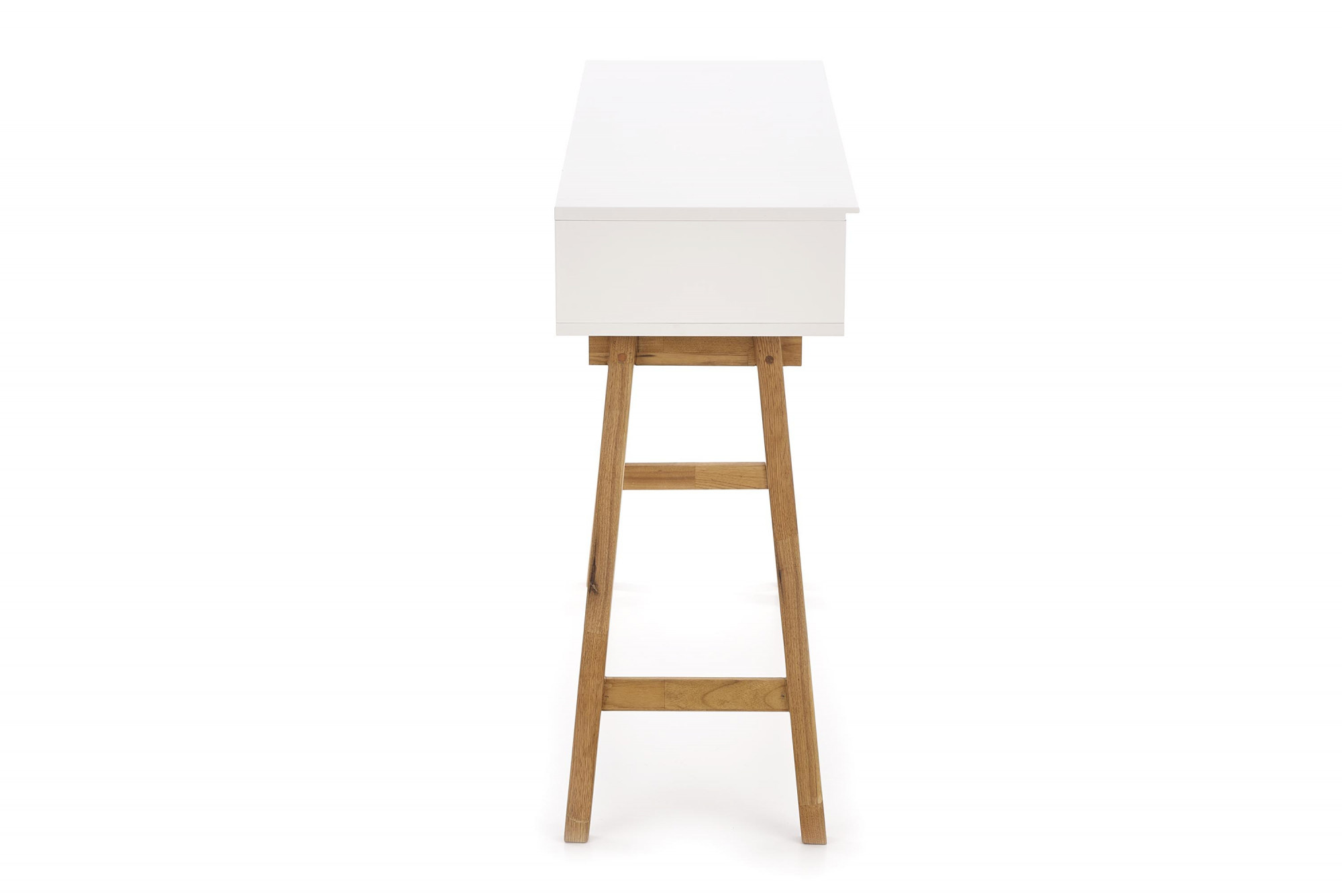 méretek: 110/35/80 cm, anyag: lakkozott MDF / tömör fa, szín: matt fehér - természetes