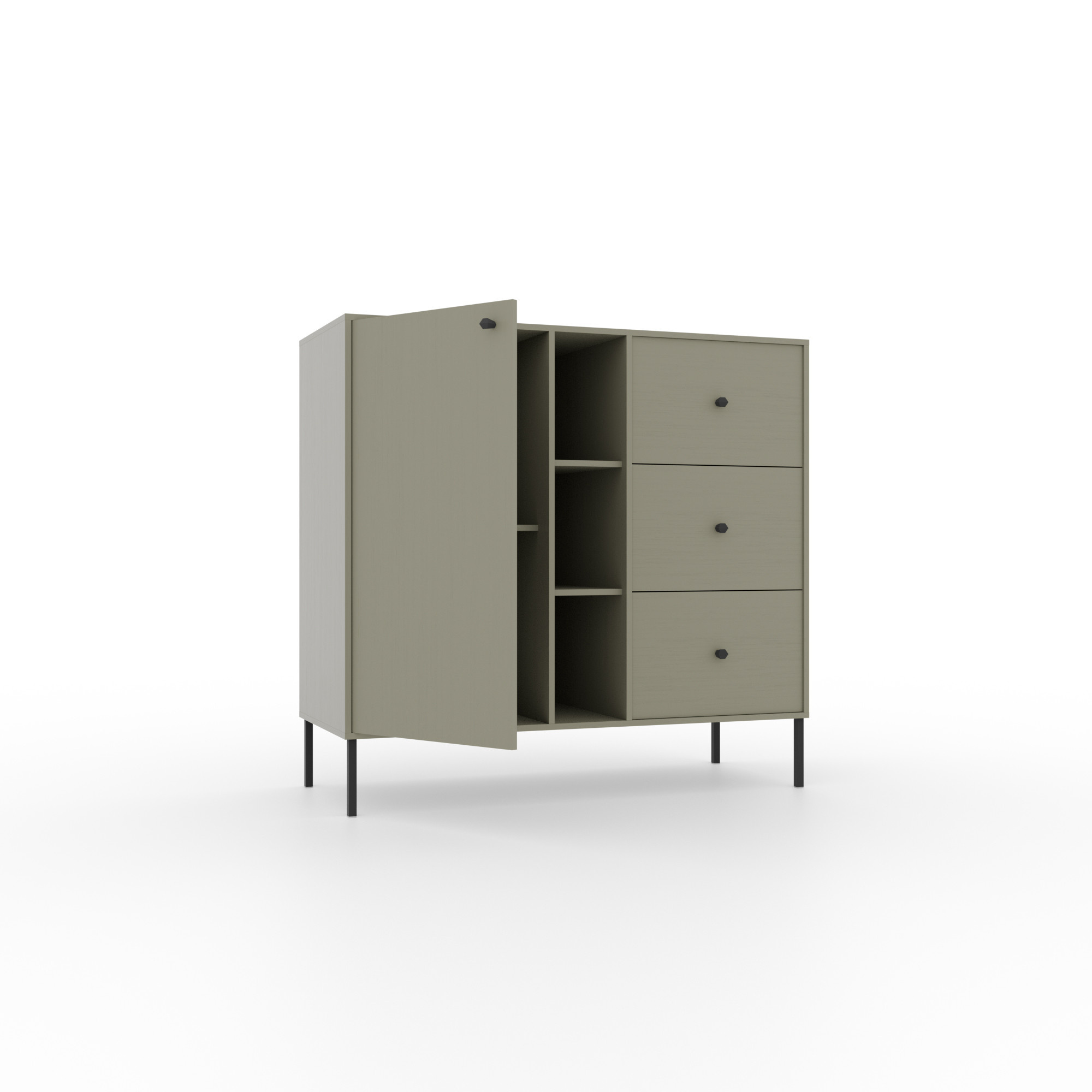 A Tili System komód egy modern bútor, amely átgondolt színvilágának és elegáns kialakításának köszönhetően tökéletesen illeszkedik a különböző belső terekbe. Három színváltozatban elérhető: **fekete**, **homok bézs** és **eukaliptusz**, a komód a funkcionalitás és az esztétika harmonikus összekapcsolását képviseli. Minden színváltozatot gondosan úgy tervezték, hogy kiemelje a belső tér egyedi jellegét. **A fekete** kifinomult, modern megjelenést kölcsönöz a komódnak, ideális a minimalista és elegáns terekhez. **Homok bézs** melegséget és lágyságot hoz, tökéletesen illik a világos, természetes belső elemekhez. Míg a **eukaliptusz** egy természet ihlette árnyalat, amely frissességet és könnyedséget hoz a belső térbe, ideális a modern és a klasszikusabb elrendezésekhez is.