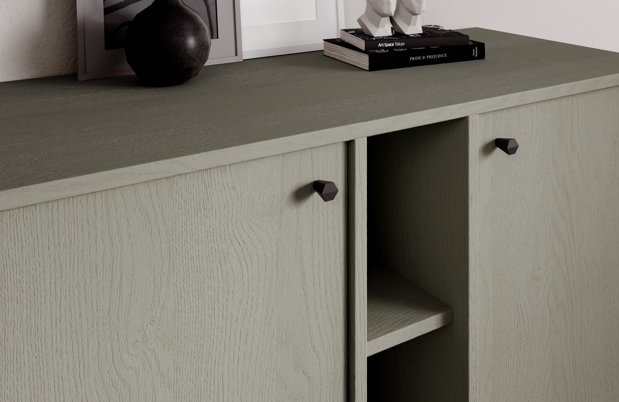 A Tili System komód egy modern bútor, amely átgondolt színvilágának és elegáns kialakításának köszönhetően tökéletesen illeszkedik a különböző belső terekbe. Három színváltozatban elérhető: **fekete**, **homok bézs** és **eukaliptusz**, a komód a funkcionalitás és az esztétika harmonikus összekapcsolását képviseli.Minden színváltozatot gondosan úgy tervezték, hogy kiemelje a belső tér egyedi jellegét. **A fekete** kifinomult, modern megjelenést kölcsönöz a komódnak, ideális a minimalista és elegáns terekhez. **Homok bézs** melegséget és lágyságot hoz, tökéletesen illik a világos, természetes belső elemekhez. Míg a **eukaliptusz** egy természet ihlette árnyalat, amely frissességet és könnyedséget hoz a belső térbe, ideális a modern és a klasszikusabb elrendezésekhez is.