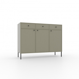 A Tili System komód egy modern bútor, amely átgondolt színvilágának és elegáns kialakításának köszönhetően tökéletesen illeszkedik a különböző belső terekbe. Három színváltozatban elérhető: **fekete**, **homok bézs** és **eukaliptusz**, a komód a funkcionalitás és az esztétika harmonikus összekapcsolását képviseli.Minden színváltozatot gondosan úgy tervezték, hogy kiemelje a belső tér egyedi jellegét. **A fekete** kifinomult, modern megjelenést kölcsönöz a komódnak, ideális a minimalista és elegáns terekhez. **Homok bézs** melegséget és lágyságot hoz, tökéletesen illik a világos, természetes belső elemekhez. Míg a **eukaliptusz** egy természet ihlette árnyalat, amely frissességet és könnyedséget hoz a belső térbe, ideális a modern és a klasszikusabb elrendezésekhez is.