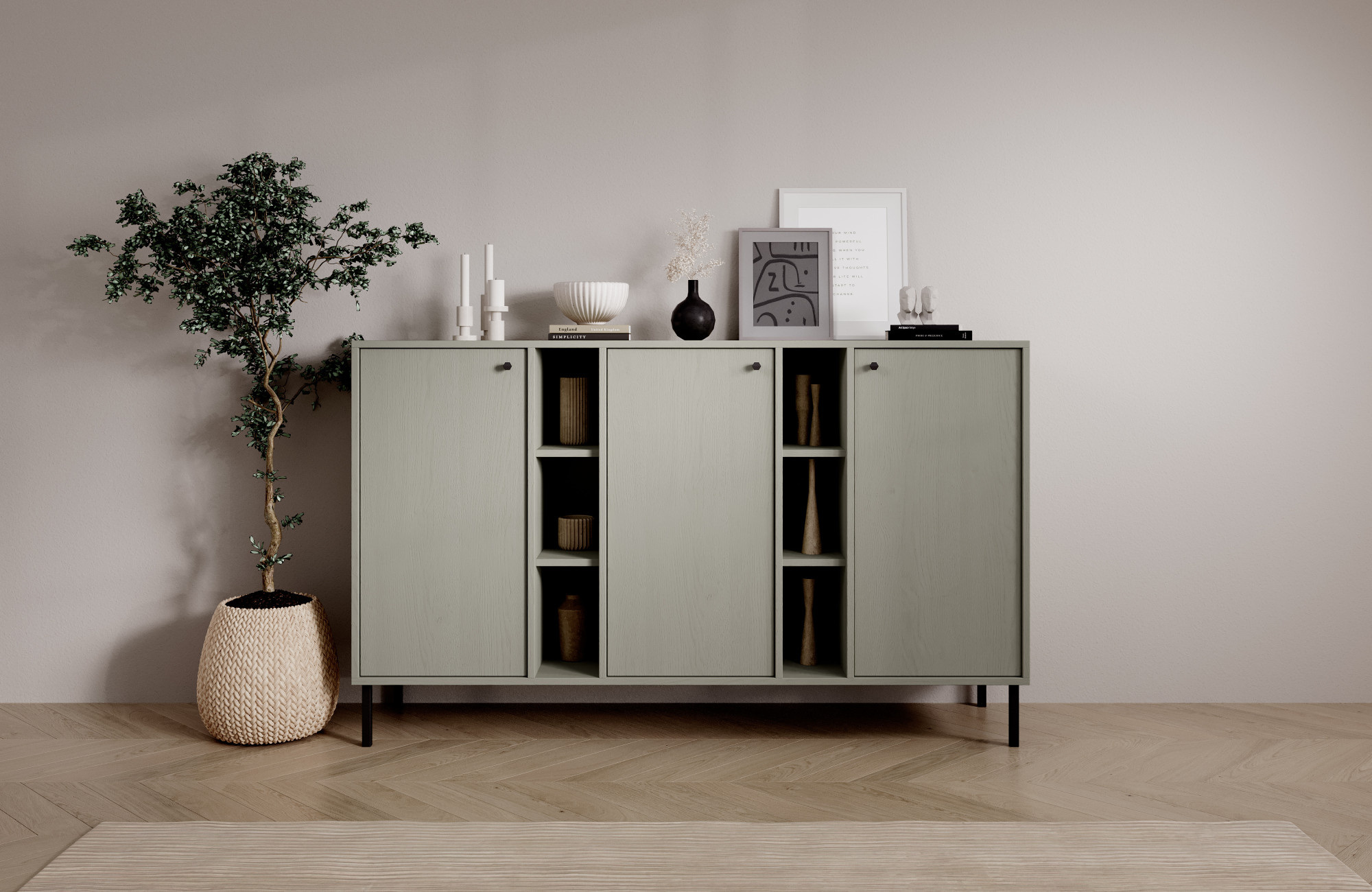 A Tili System komód egy modern bútor, amely átgondolt színvilágának és elegáns kialakításának köszönhetően tökéletesen illeszkedik a különböző belső terekbe. Három színváltozatban elérhető: **fekete**, **homok bézs** és **eukaliptusz**, a komód a funkcionalitás és az esztétika harmonikus összekapcsolását képviseli.Minden színváltozatot gondosan úgy tervezték, hogy kiemelje a belső tér egyedi jellegét. **A fekete** kifinomult, modern megjelenést kölcsönöz a komódnak, ideális a minimalista és elegáns terekhez. **Homok bézs** melegséget és lágyságot hoz, tökéletesen illik a világos, természetes belső elemekhez. Míg a **eukaliptusz** egy természet ihlette árnyalat, amely frissességet és könnyedséget hoz a belső térbe, ideális a modern és a klasszikusabb elrendezésekhez is.