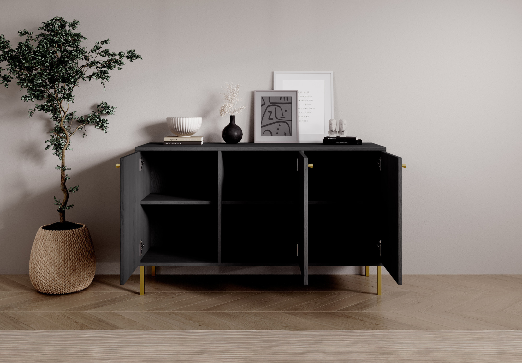 A Tili System komód egy modern bútor, amely átgondolt színvilágának és elegáns kialakításának köszönhetően tökéletesen illeszkedik a különböző belső terekbe. Három színváltozatban elérhető: **fekete**, **homok bézs** és **eukaliptusz**, a komód a funkcionalitás és az esztétika harmonikus összekapcsolását képviseli.Minden színváltozatot gondosan úgy tervezték, hogy kiemelje a belső tér egyedi jellegét. **A fekete** kifinomult, modern megjelenést kölcsönöz a komódnak, ideális a minimalista és elegáns terekhez. **Homok bézs** melegséget és lágyságot hoz, tökéletesen illik a világos, természetes belső elemekhez. Míg a **eukaliptusz** egy természet ihlette árnyalat, amely frissességet és könnyedséget hoz a belső térbe, ideális a modern és a klasszikusabb elrendezésekhez is.