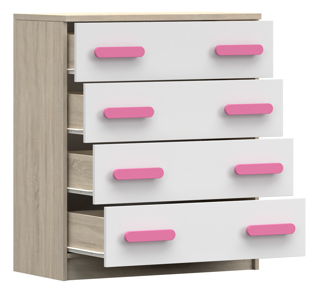 Komód 4S SMYK III - 02, Sonoma Tölgy/Fehér/Rózsaszín