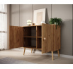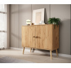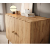 Ez a stílusos Deri komód ideális megoldás a modern belső terek számára. Minimalista design, magas fa lábak és zsinór fogantyúk egyedi karaktert kölcsönöznek neki. A csendes záródású ajtóknak és az állítható polcoknak köszönhetően a teret az igényeidhez igazíthatod. 18 mm vastagságú, tartós anyagokból készült, garantálja a szilárdságot és a hosszú élettartamot. Hozz létre harmonikus elrendezést, összekapcsolva a komódot a többi bútorral a belső térben!