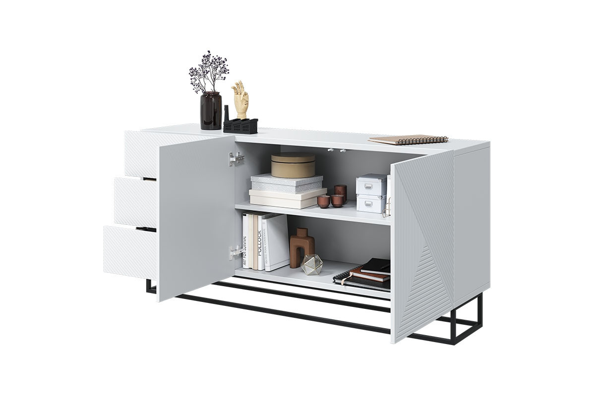 167 cm Komoda Asha se zásuvkami na kovových nožkách - bílá matná, Šířka: 167, Výška: 81, Hloubka: 43, Výška nožek: 16