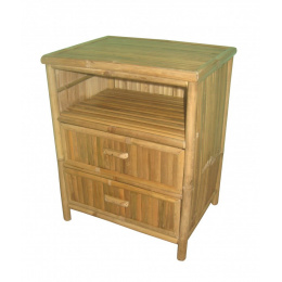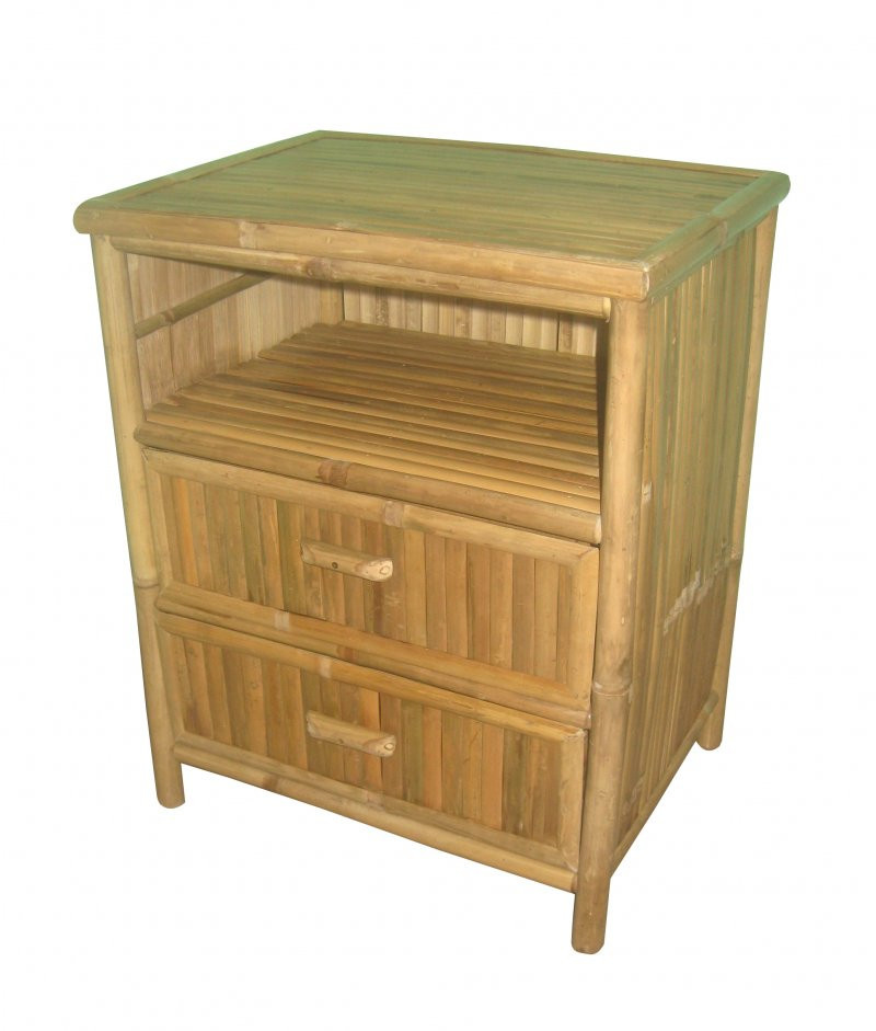 Komoda se 2 zásuvkami vyrobená z přírodního bambusu. | Velikost komody je 56x43x68 cm Pro výrobu tohoto bambusového nábytku je použit druh bambusu s minimální vnitřní dutinou, který roste v jižní oblasti Vietnamu. Díky tomu je bambusový nábytek velice pevný a nepraská.