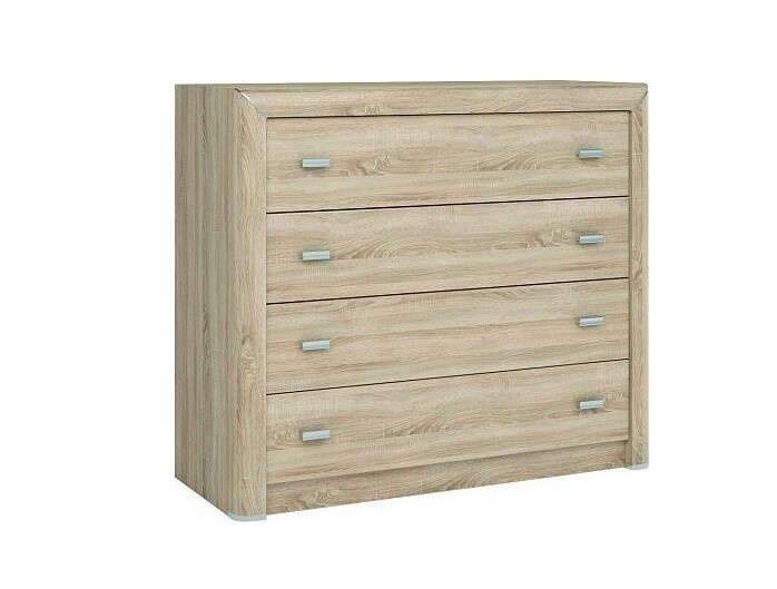 Komoda z kolekce Cleo vyniká elegantním designem a zaoblenými hranami. Nábytek je vyroben z lamina v dekoru dub sonoma.