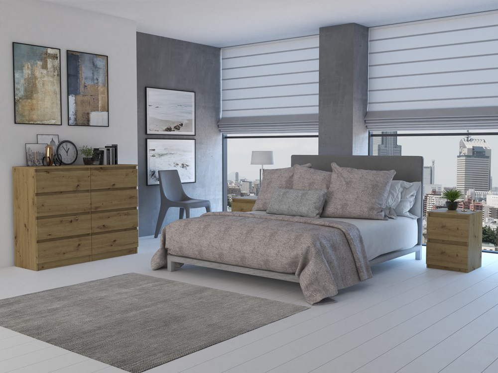 Nadčasová komoda Malvína v minimalistickém designu nabízí díky svému provedení dostatek úložného prostoru a univerzální použití v kterékoliv místnosti vašeho bytu či domu. Bezúchytková čela zásuvek zajistí pohodlné používání a dokreslí moderní a útulný charakter vašeho interiéru. Komoda je vyrobena ze snadno udržovatelného lamina, hrany jsou zakončené vysoce odolným ABS materiálem.