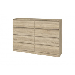 Nadčasová komoda Malvína v minimalistickém designu nabízí díky svému provedení dostatek úložného prostoru a univerzální použití v kterékoliv místnosti vašeho bytu či domu. Bezúchytková čela zásuvek zajistí pohodlné používání a dokreslí moderní a útulný charakter vašeho interiéru. Komoda je vyrobena ze snadno udržovatelného lamina, hrany jsou zakončené vysoce odolným ABS materiálem.