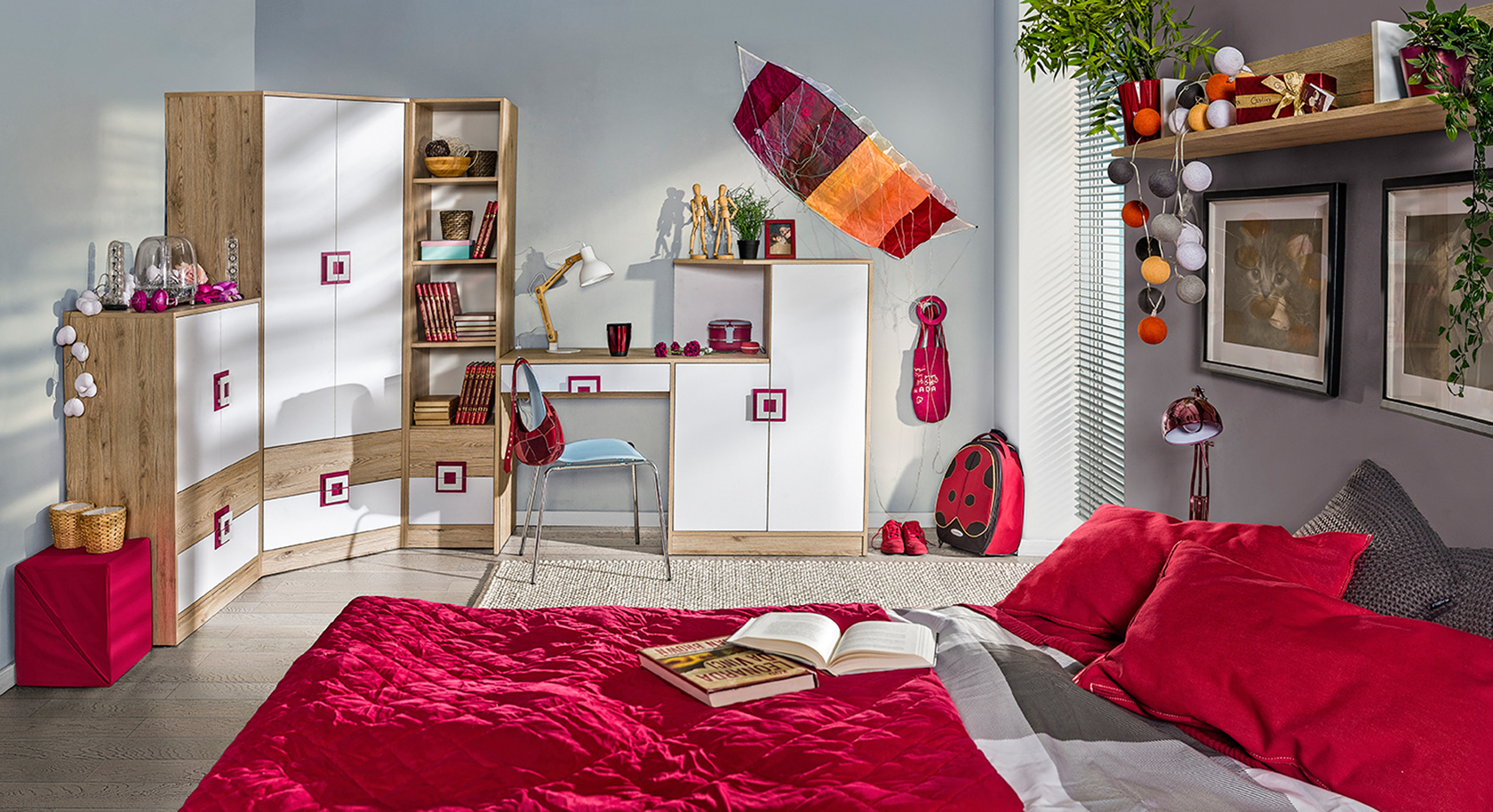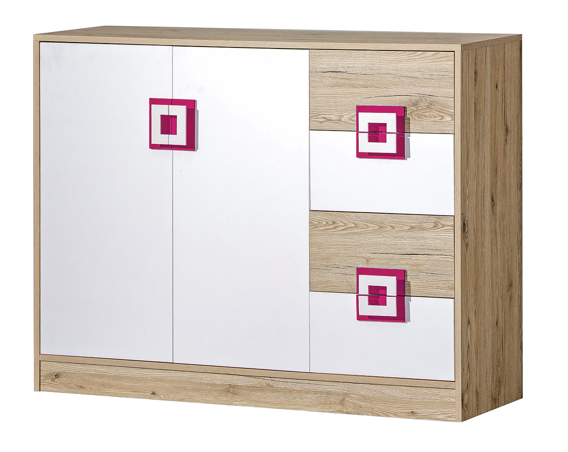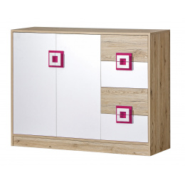 Komoda NICO 08, Světlý Dub/Bílá/Růžová