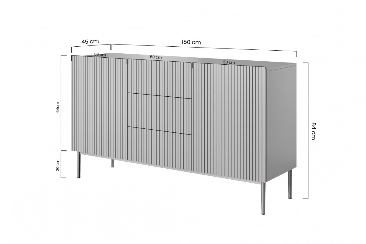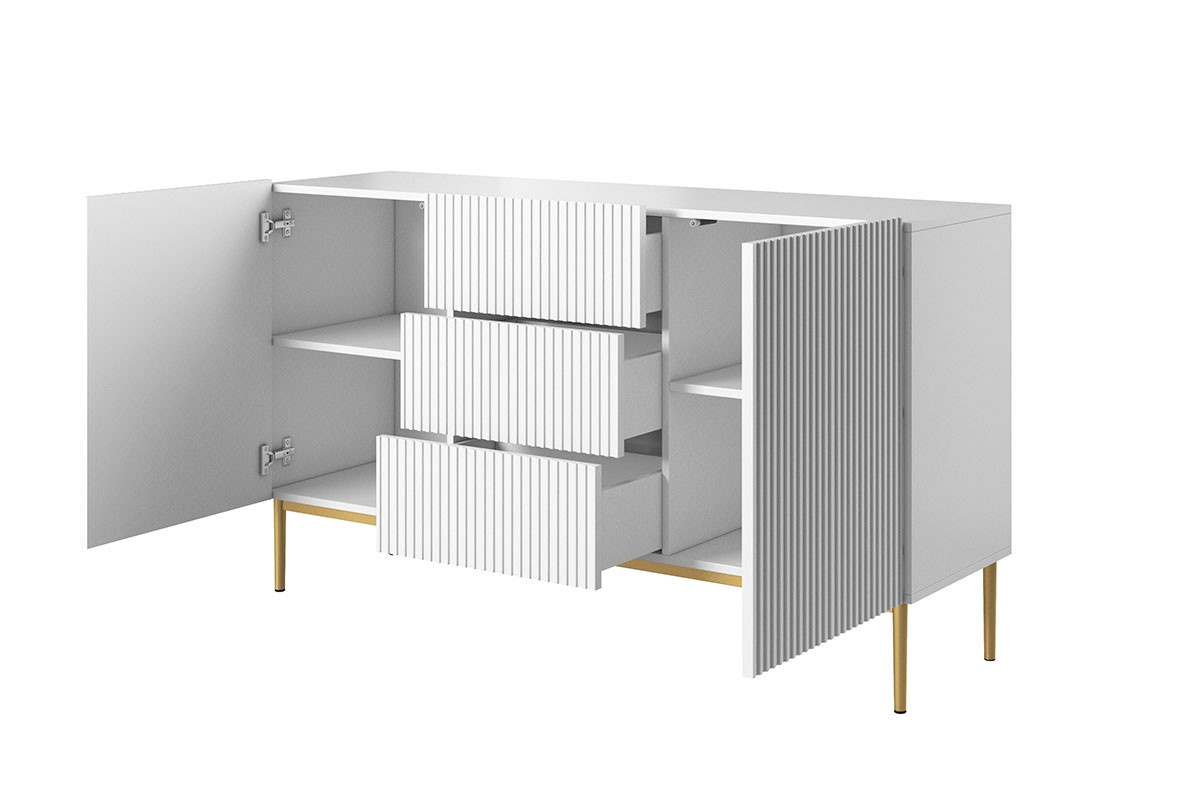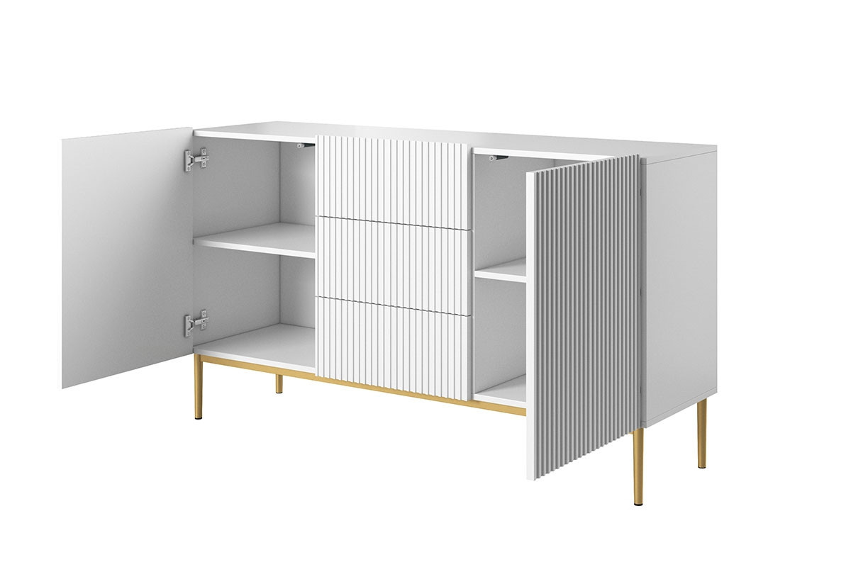 Nicole 150 cm komoda se třemi zásuvkami - bílý mat / zlaté nohy, šířka: 150, výška: 85, hloubka: 45, výška nohou: 20