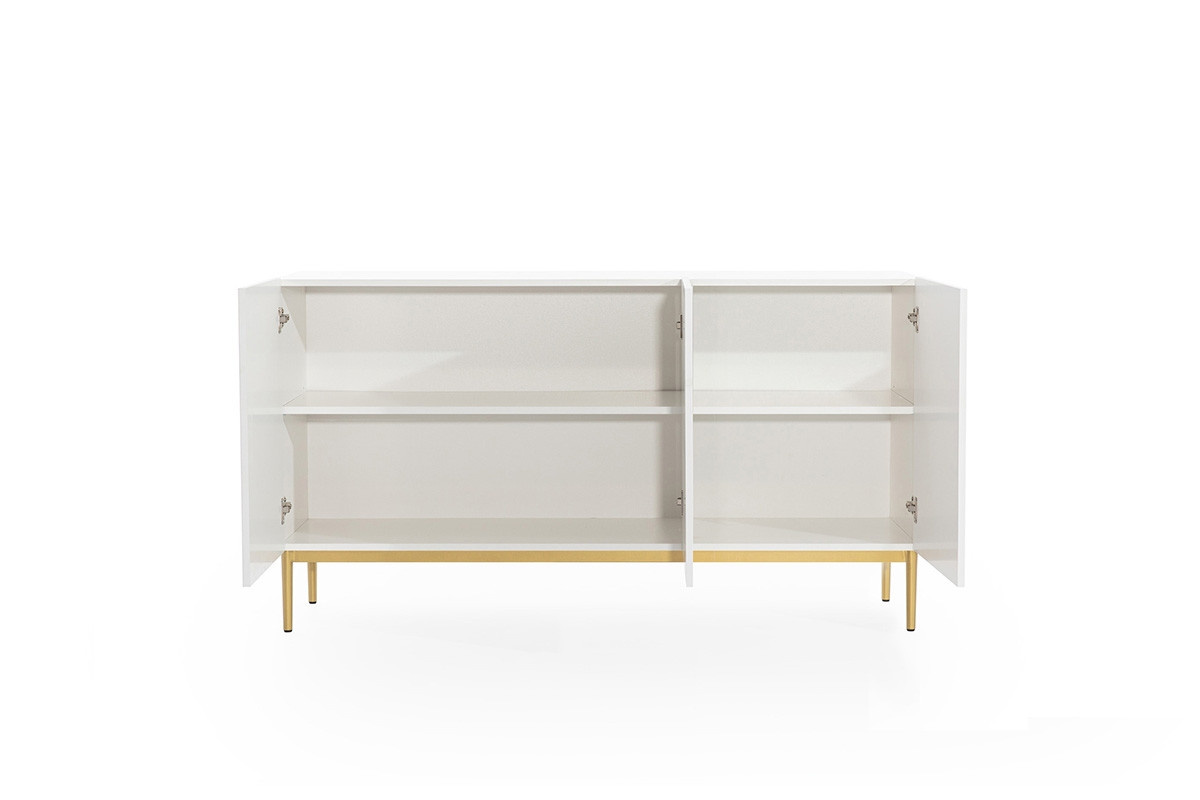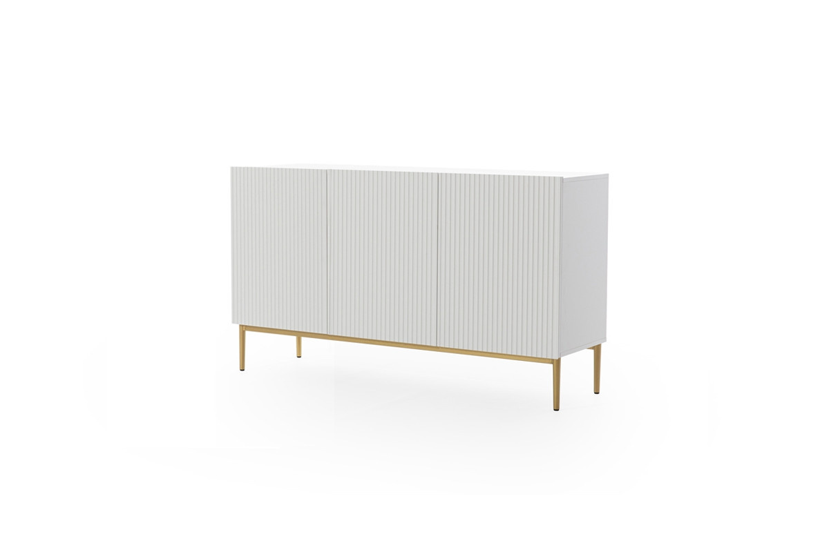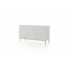 Nicole 150 cm komoda s drážkovaným čelem na kovových nohách - bílý mat / zlaté nohy, šířka: 150, výška: 85, hloubka: 45, výška nohou: 20