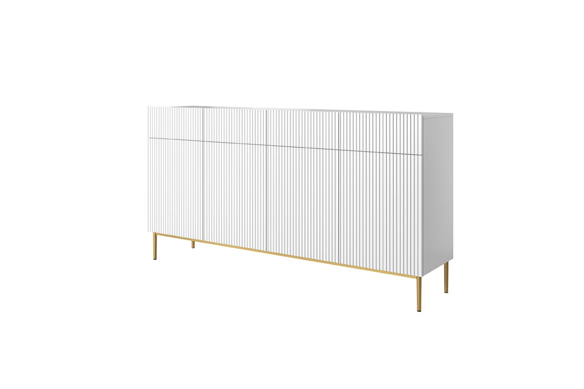 Nicole 200 cm komoda se čtyřmi zásuvkami - bílý mat / zlaté nožičky, šířka: 200, výška: 105, hloubka: 45, výška nožiček: 20