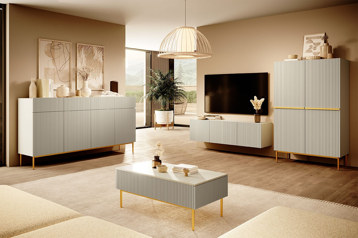 Komoda Nicole 200 cm - kašmír / zlaté nohy, šířka: 200, výška: 105, hloubka: 45, výška nohou: 20
