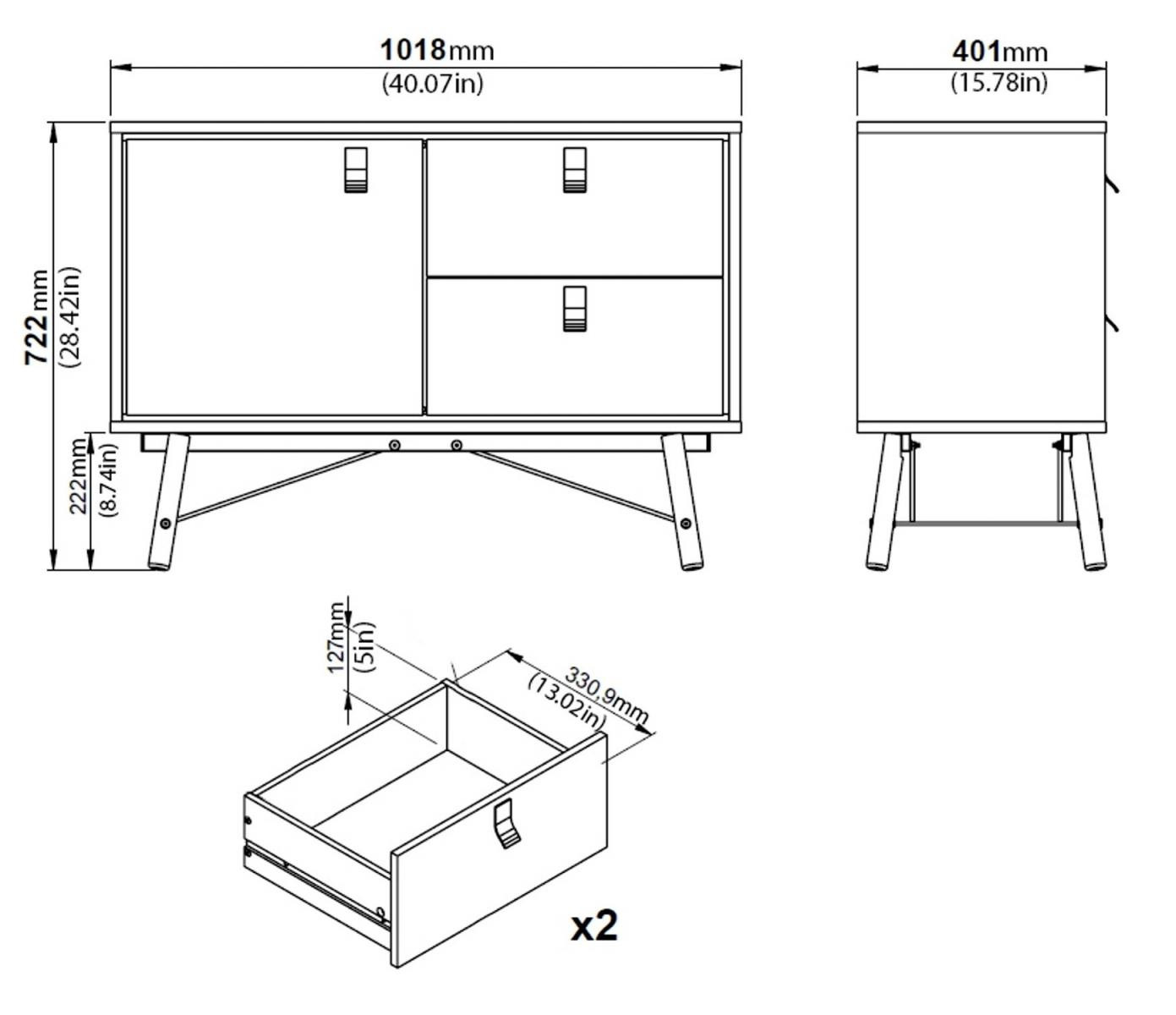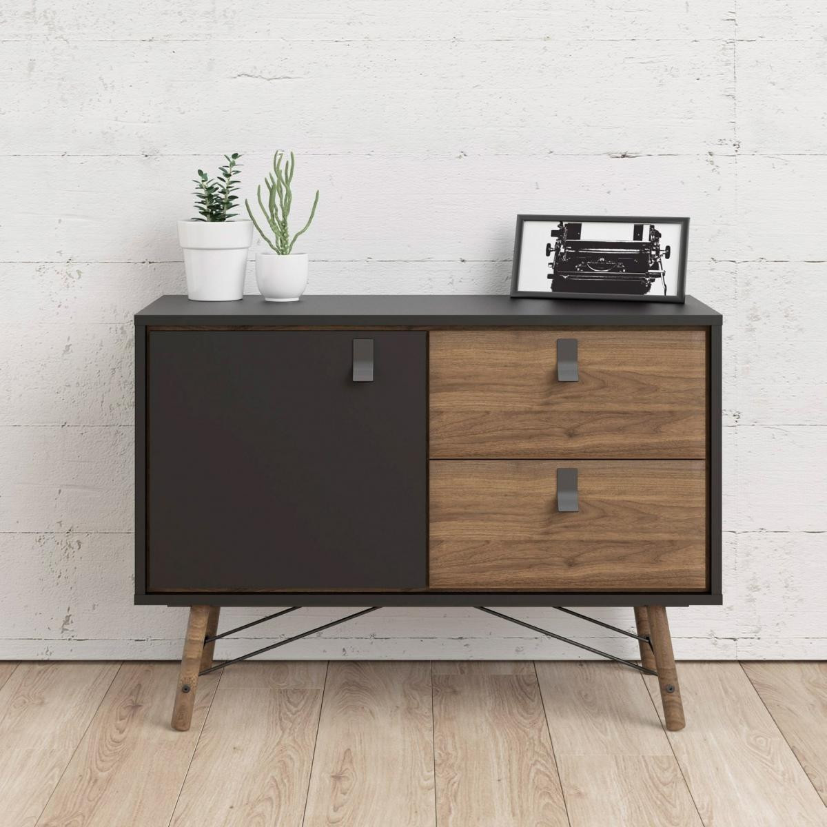 Komoda RAIN 1d2s, Černý mat/Ořech
