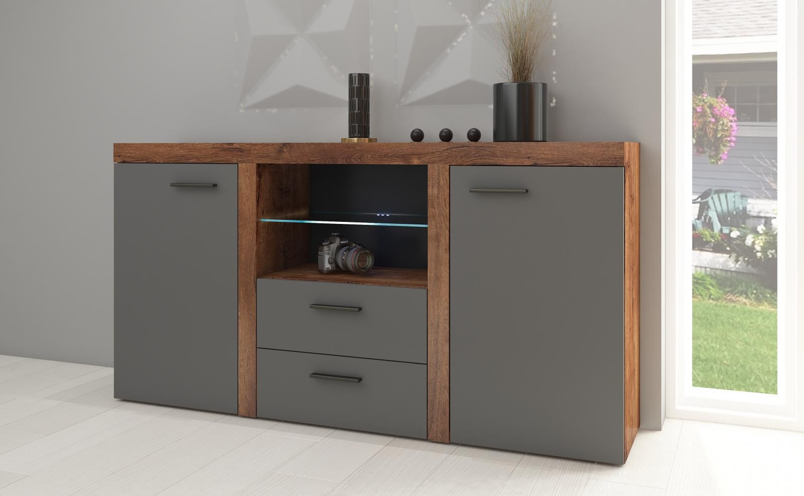 Komoda RIZO 2D2S, dub lefkas/grafit