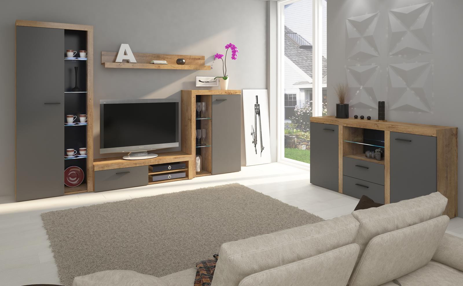 Komoda Rizo je nejen skvělým doplňkem k bytové stěně Rizo. Stejně výborně poslouží jako samostatný kus nábytku. Komoda má univerzální využití a nabízí dostatek úložného prostoru. Komoda je vyrobena z odolného a stálobarevného lamina. Komoda je dodávaná v demontu. Součástí balení je schematický montážní návod, včetně všech potřebných spojovacích prvků. Vyobrazené doplňky, LED osvětlení a dekorace nejsou v ceně. Vlivem nastavení monitorů, nebo displejů telefonů, se zobrazení barev na fotograii může od skutečnosti lišit.