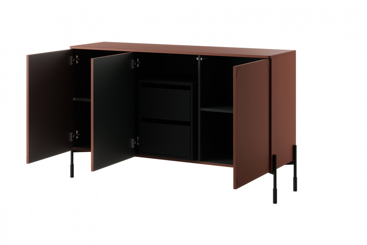 Třídveřová komoda se 2 skrytými zásuvkami Sonatia 150 cm - bordó,