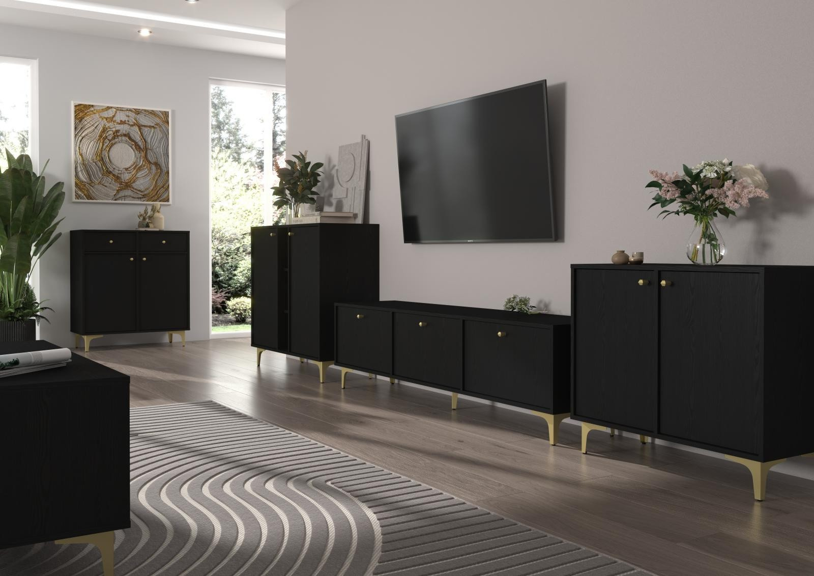 Série Tomila nabízí noční, TV i konferenční stolky, vitríny a komody v široké škále tvarů, barev a typů noh.