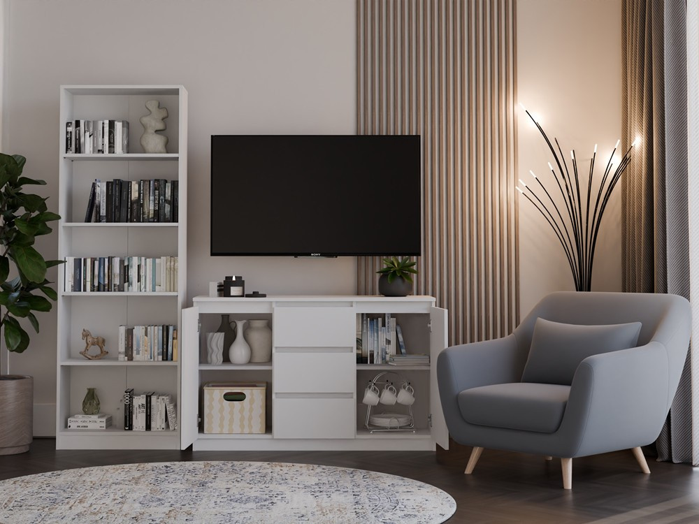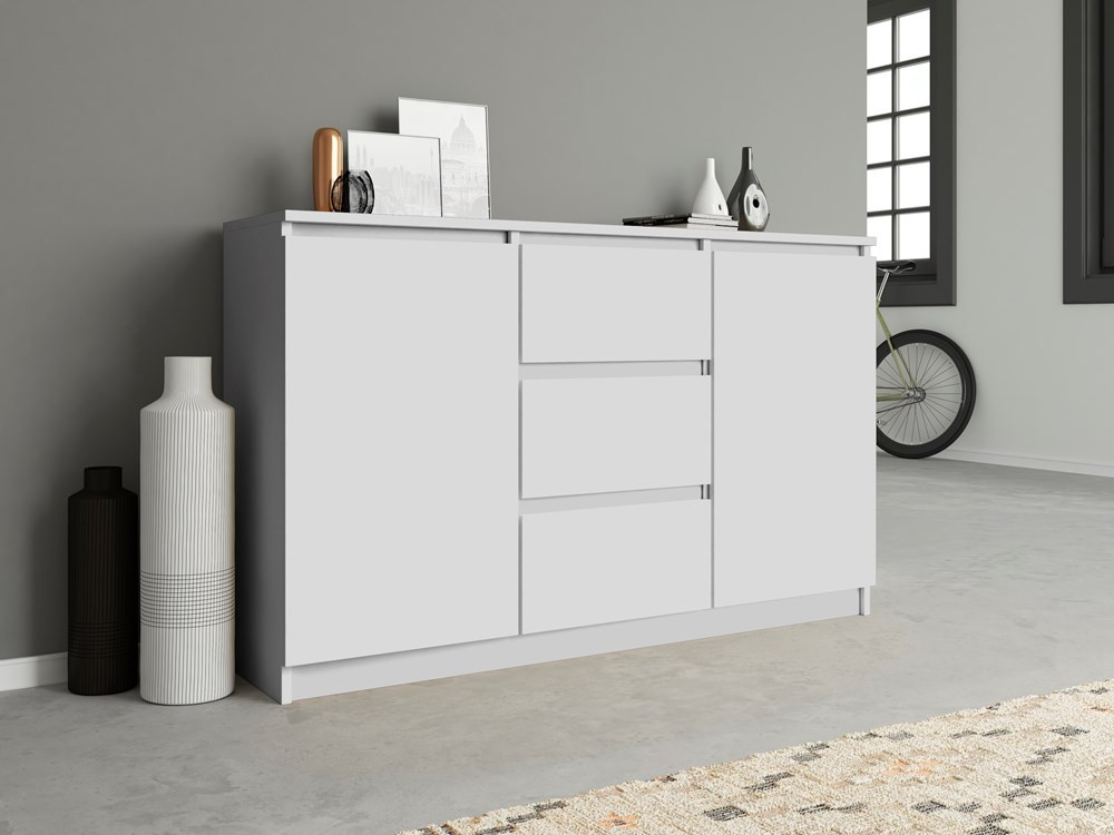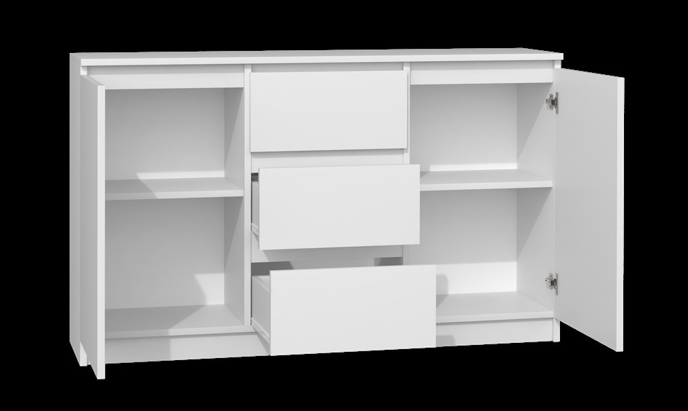 Funkční a prostorná komoda Topa v nadčasovém elegantním designu ozdobí každý prostor vašeho domu či bytu. Pohodlná bezúchytková čela zásuvek a dvířka podtrhnou moderní charakter interiéru. Komoda je vyrobená z kvalitního 16 mm lamina, hrany jsou zakončené vysoce odolným ABS materiálem.