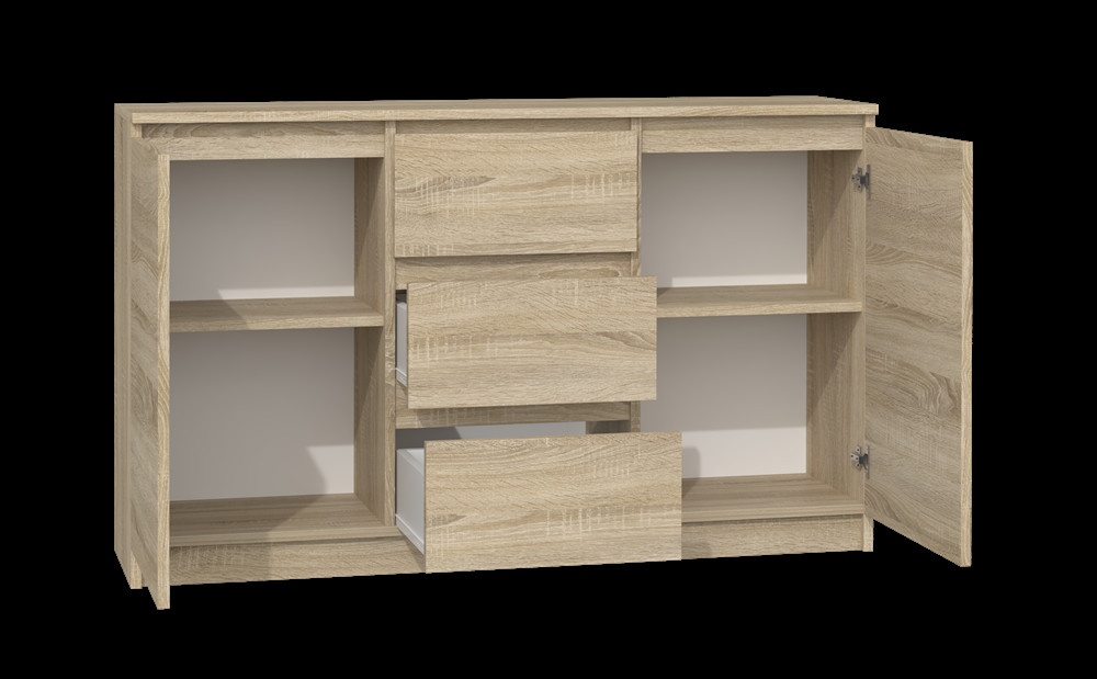 Funkční a prostorná komoda Topa v nadčasovém elegantním designu ozdobí každý prostor vašeho domu či bytu. Pohodlná bezúchytková čela zásuvek a dvířka podtrhnou moderní charakter interiéru. Komoda je vyrobená z kvalitního 16 mm lamina, hrany jsou zakončené vysoce odolným ABS materiálem.