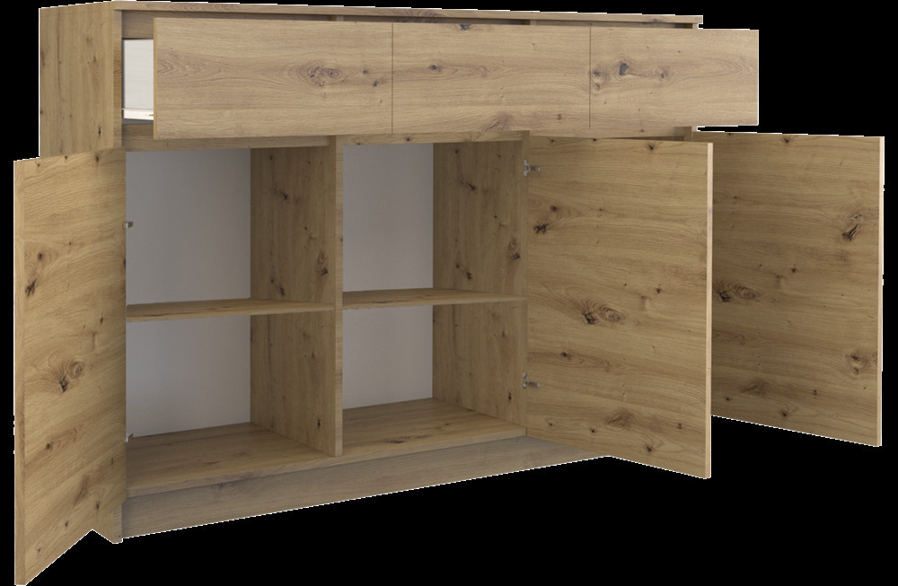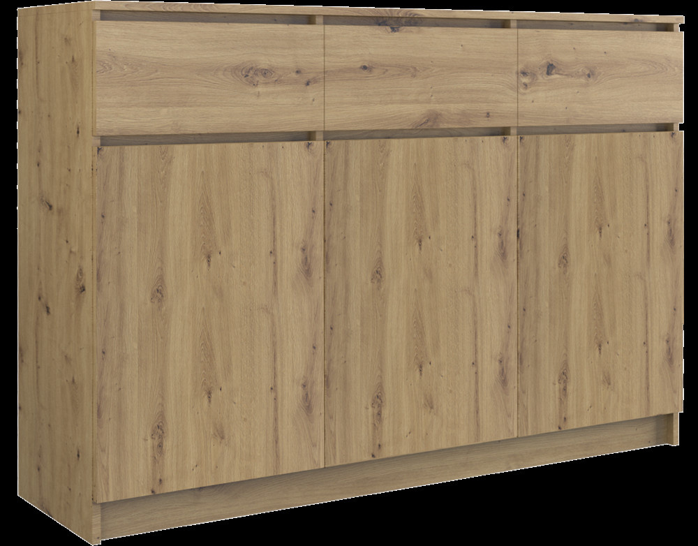 Funkční a prostorná komoda Topa v nadčasovém elegantním designu ozdobí každý prostor vašeho domu či bytu. Pohodlná bezúchytková čela zásuvek a dvířka podtrhnou moderní charakter interiéru. Komoda je vyrobená z kvalitního 16 mm lamina, hrany jsou zakončené vysoce odolným ABS materiálem.
