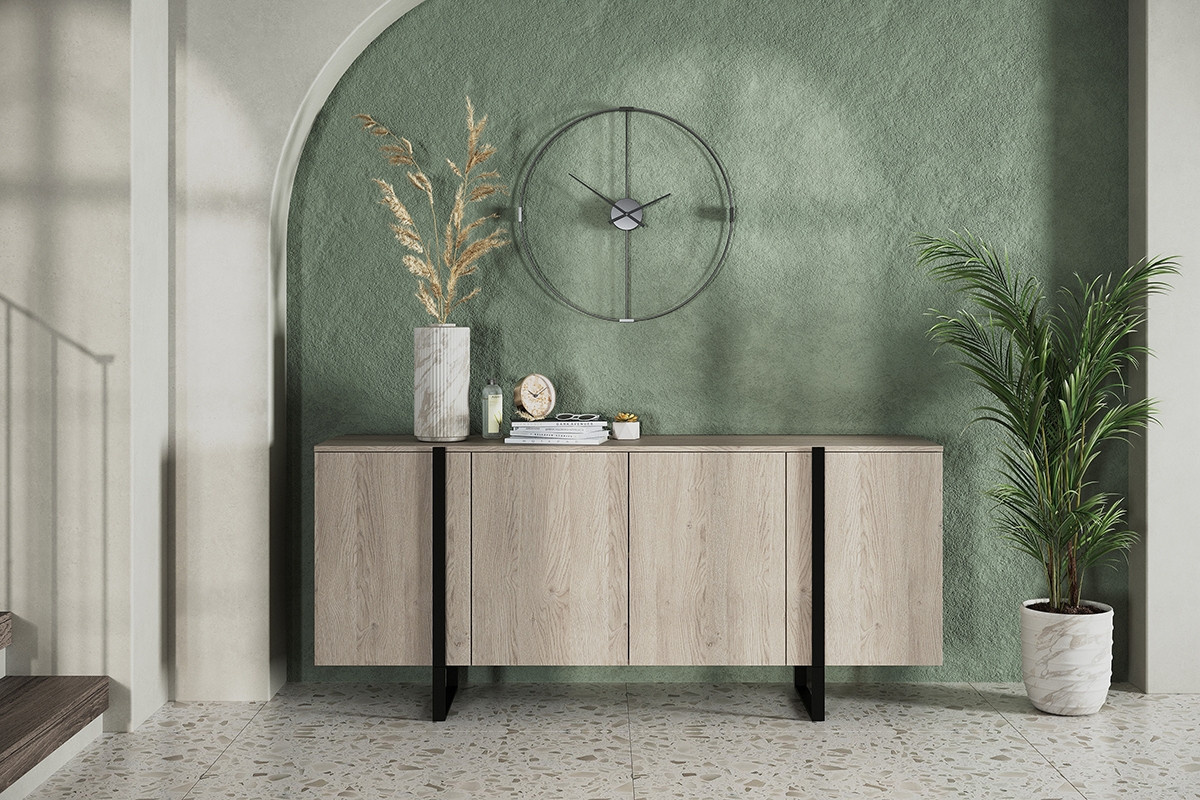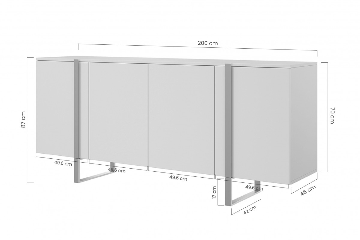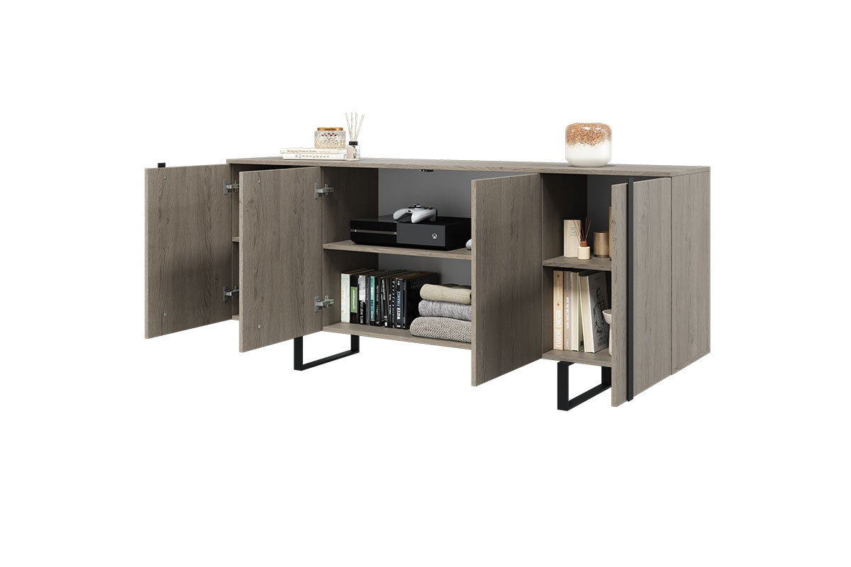 Komoda Verica 200 cm - dub skvrnitý / černé nohy, šířka: 200, výška: 87, hloubka: 45, výška nožiček: 17