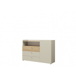 Komoda Yuva R8 je vyrobena z kvalitního lamina v krásném dekoru přírodního dubu a šedobéžové barvy. Lamino je odolné a jistě oceníte jeho snadnou údržbu. Komoda je dodávaná v demontu. Součástí balení je montážní návod včetně všech spojovacích prvků.