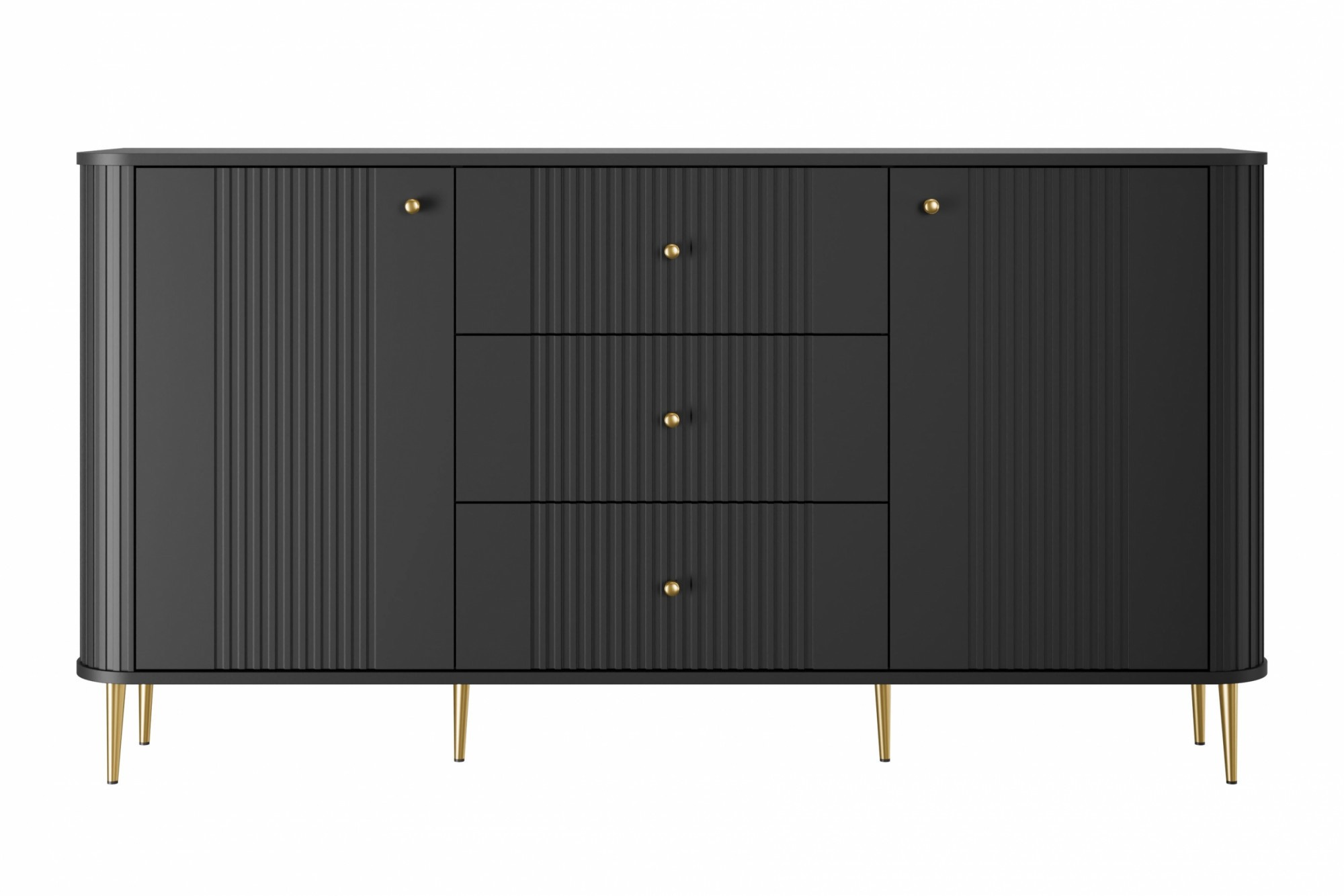 Komoda z szufladami Vesper 160 cm - czarny / złote nogi, Szerokość: 160, Wysokość: 85, Głębokość: 38, Wysokość nóżek: 15, Głębokość blatu: , Montaż: