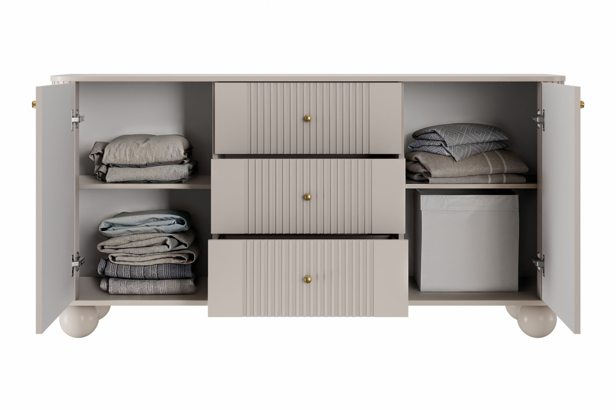 Komoda z szufladami Vesper 160 cm - kaszmir / złote uchwyty / nogi kule