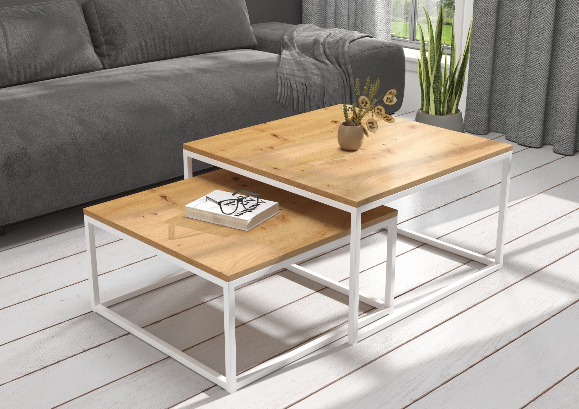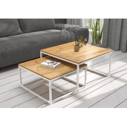 KAMA dohányzóasztal készlet acél vázzal és laminált lapból készült asztallappal. A KAMA ideális hely a kávé melletti pihenésre. Egyszerű és egyben rendkívüli design, amely minden belső térbe illik.