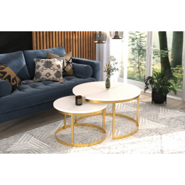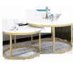 OKIN dohányzóasztal készlet acél vázzal és laminált lapból készült asztallappal. Az OKIN ideális hely a kávé melletti pihenésre. Egyszerű és egyben rendkívüli design, amely minden belső térbe illik.