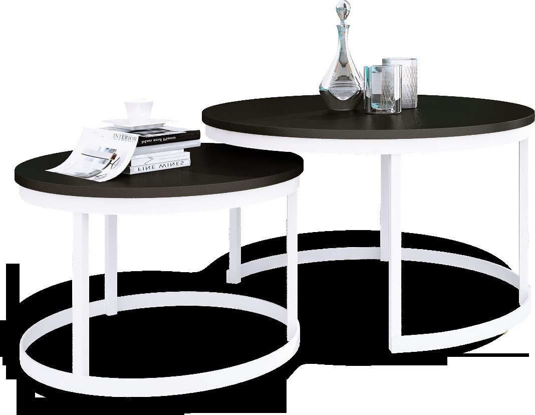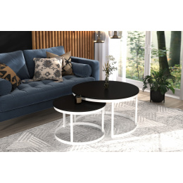 OKIN dohányzóasztal készlet acél vázzal és laminált lapból készült asztallappal. Az OKIN ideális hely a kávé melletti pihenésre. Egyszerű és egyben rendkívüli design, amely minden belső térbe illik.