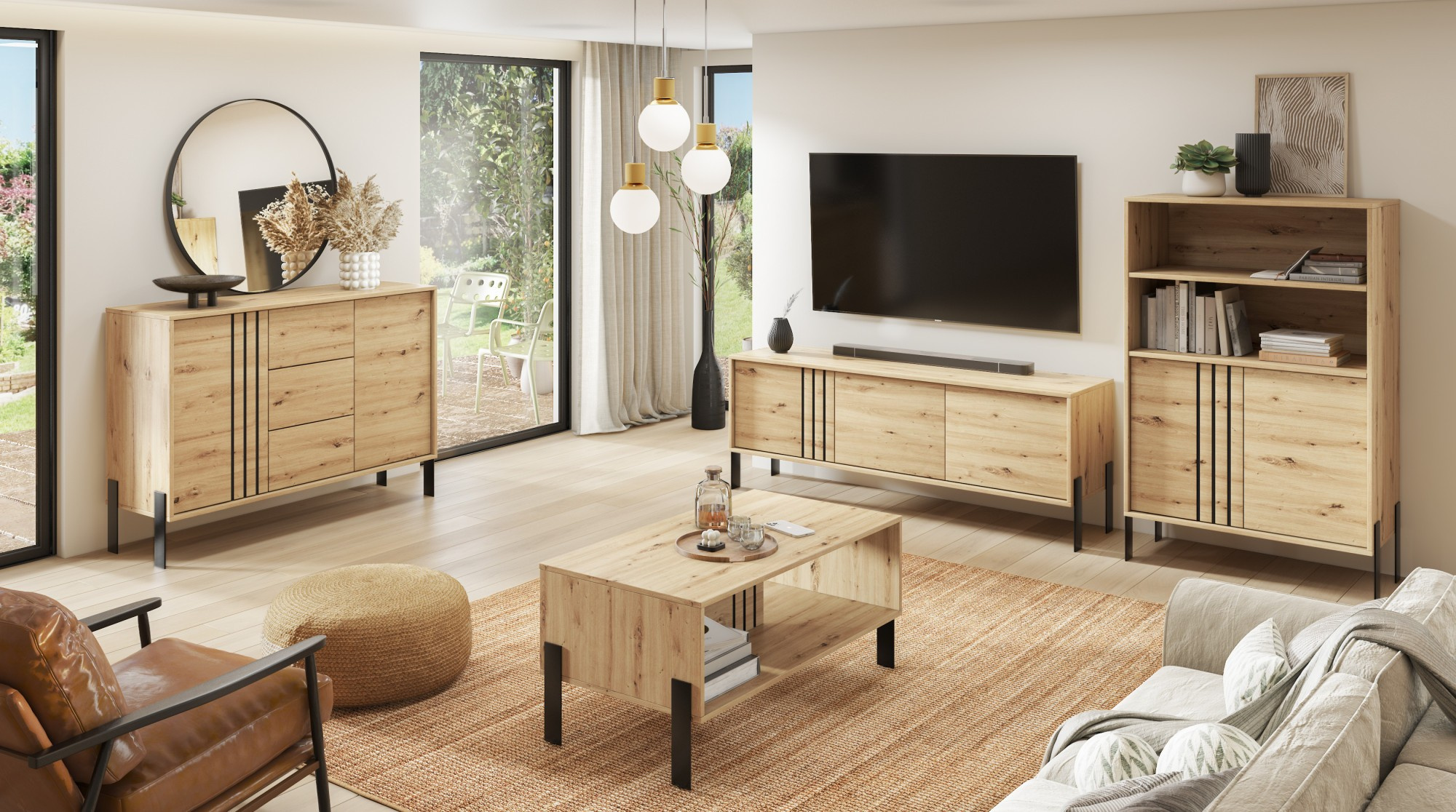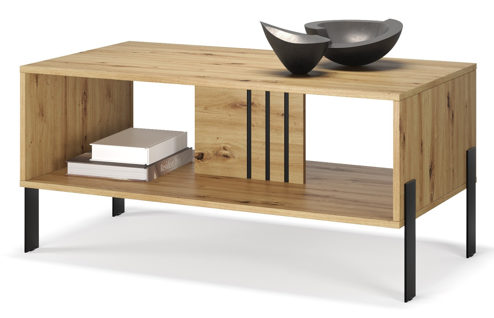 A **Nexo** dohányzóasztal a nappali modern és funkcionális eleme, amely tökéletesen kiegészíti a pihenőteret. Az egyszerű, minimalista forma elegáns részletekkel kombinálva azt eredményezi, hogy az asztal remekül illik mind a modern, mind a loft stílusú belső terekbe. A modell két stílusos színváltozatban érhető el: **Artisan**, amelyet a fa természetes megjelenése inspirált, és **Kasmír**, amely elegáns és finom jelleget kölcsönöz a belső térnek. A Nexo kollekció jellegzetes elemei a dekoratív fekete lécek és a stabil **fém lábak**, amelyek könnyedséget kölcsönöznek a bútornak és kiemelik annak modern stílusát.